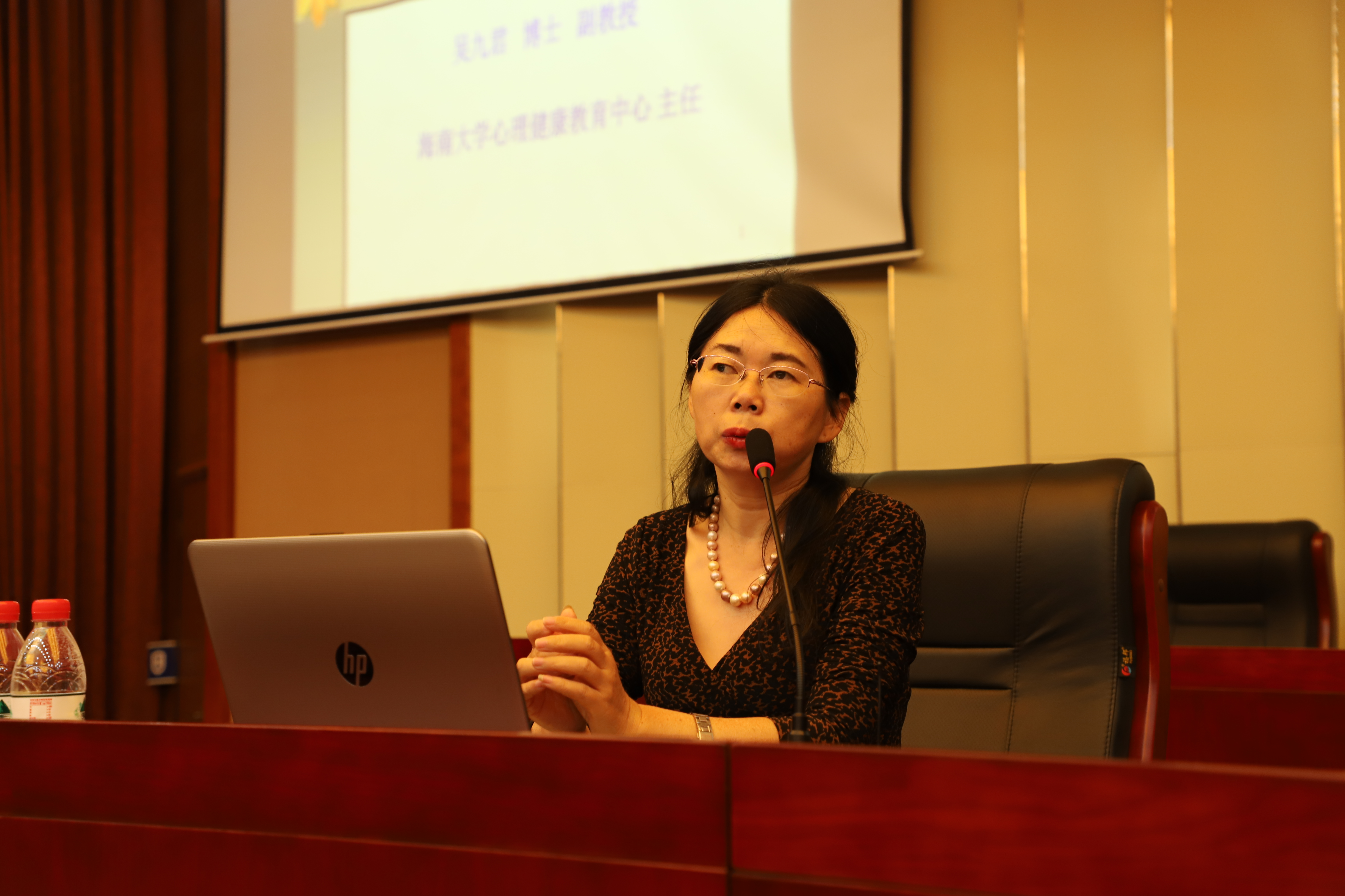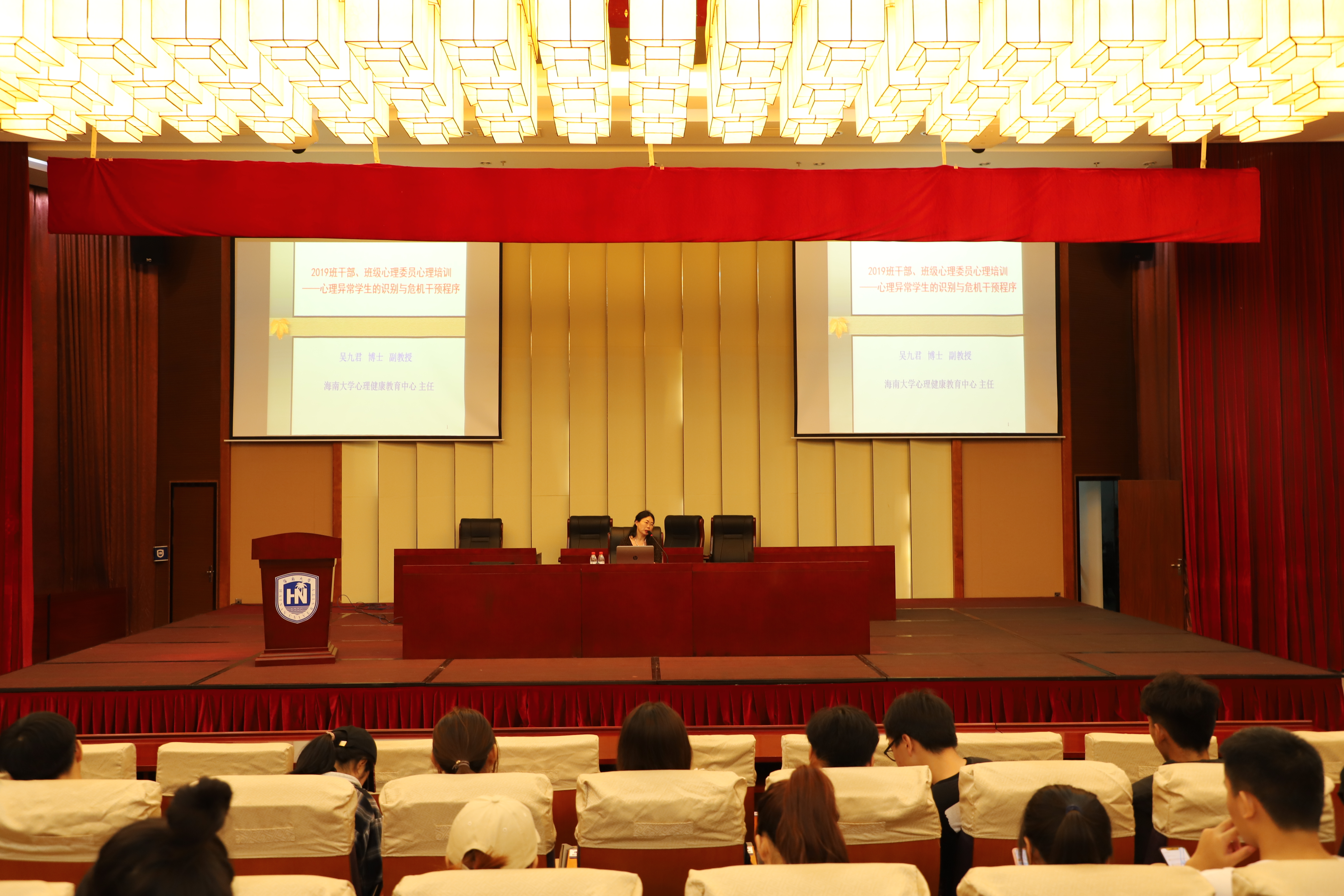 心理健康教育中心主任吴九君博士在海甸校区社科楼2楼报告厅为人文传播学院、经济学院、管理学院、马克思主义学院、土木与建筑工程学院全体班干部、心理委员带来了以“心理异常学生的识别与危机干预”为主题的心理健康培训。