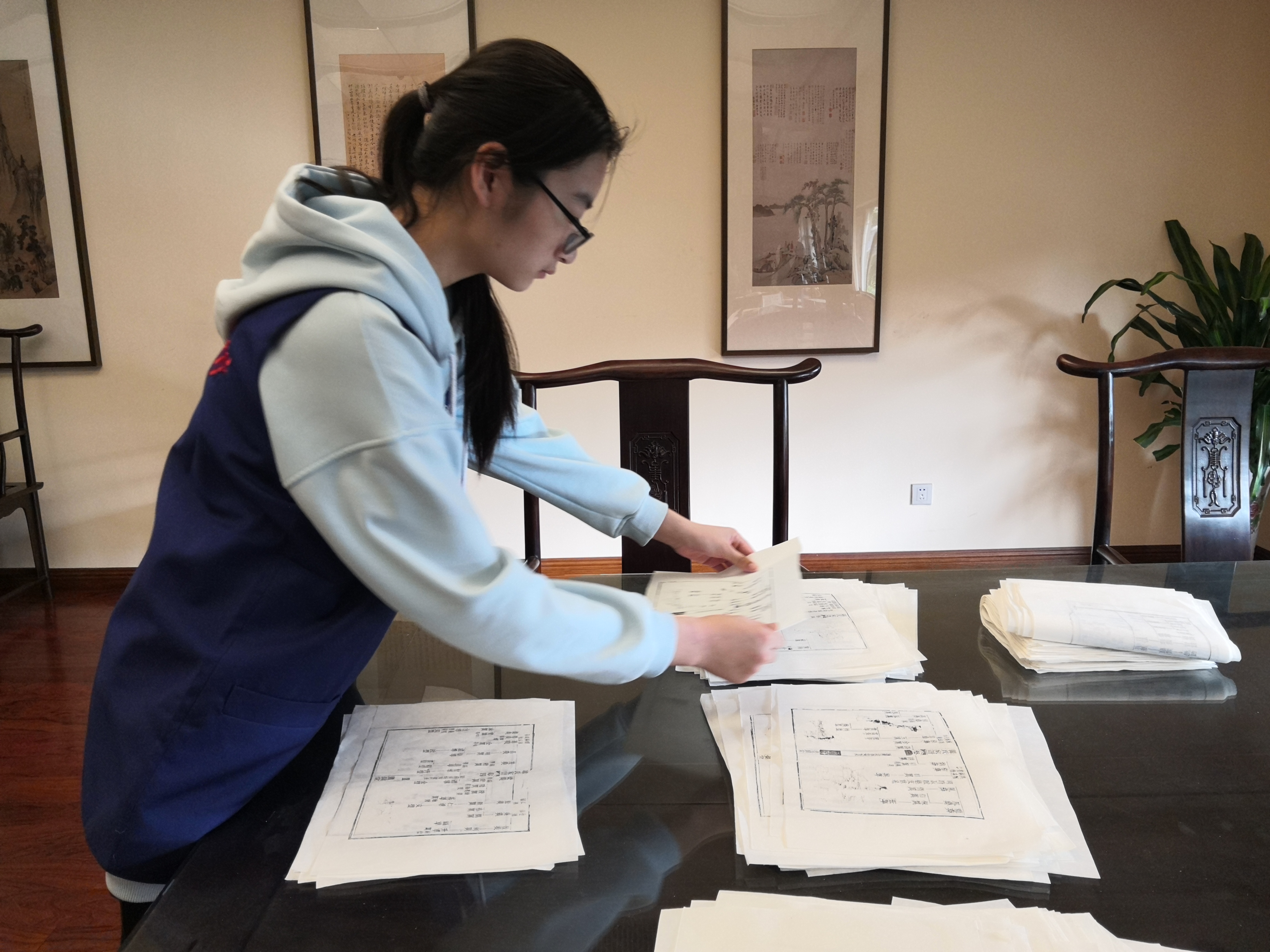 活动于下午三时正式开始。志愿者们根据任务安排,分成两组,分别前往古籍阅览室与地方文献区开始工作。在古籍阅览室里,一名志愿者细致地测量着纸张的大小,按尺寸裁剪纸张,以方便接下来文献拓印。而另外两名志愿者将拓印好的纸张分拣,挑选清晰的印刷成品,以方便装订成书。地方文献区内,一排排书墙分列两旁,两名志愿者对这些已经成册的书籍进行装书、封箱处理。志愿者轻轻拿起书本,放入准备好的纸箱或者布袋里,完成最后的封箱处理。
