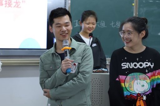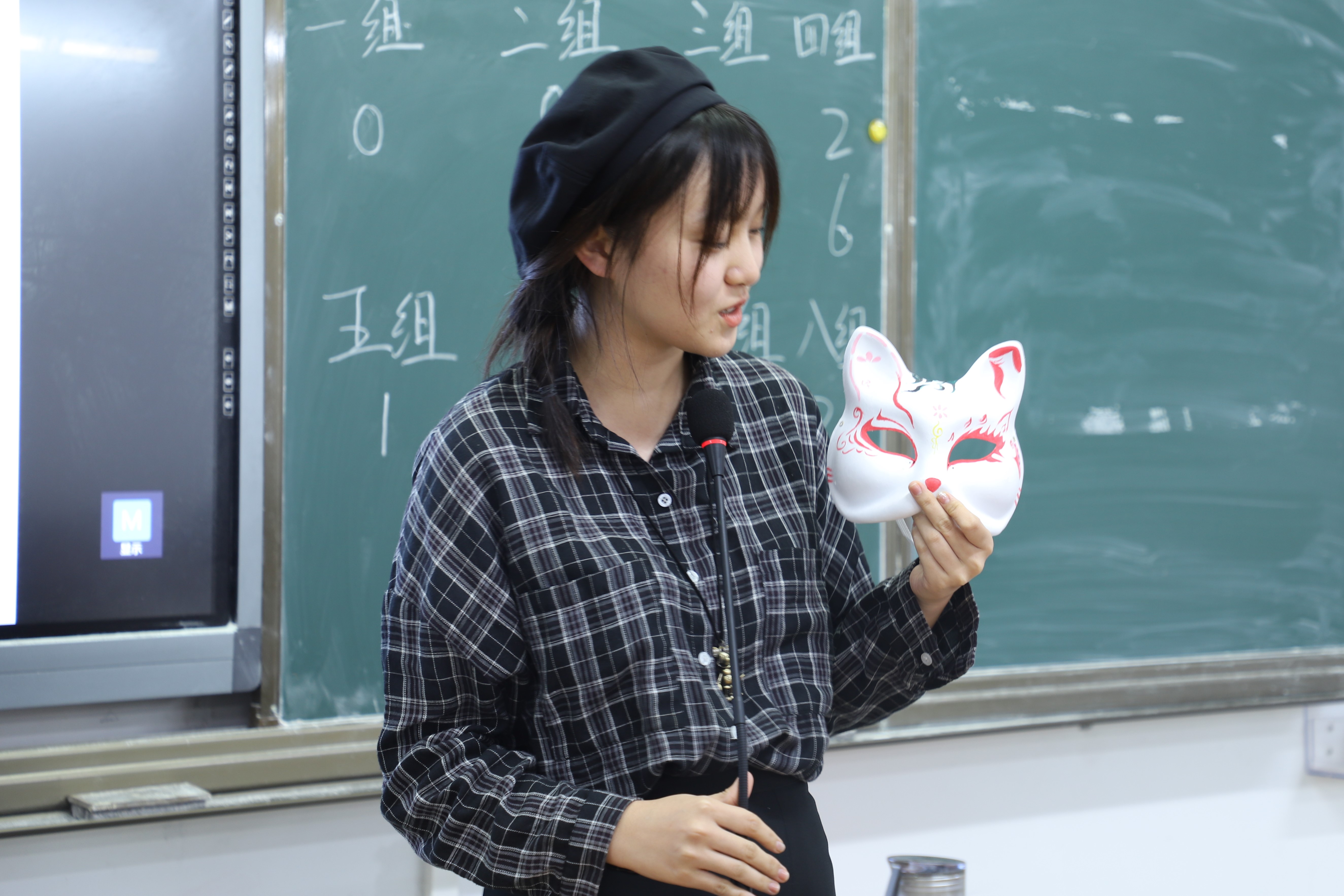 活动伊始,主持人简洁地介绍了本次活动的内容,而后,学院团委学生副书记施雅馨上台致辞。紧接着,学院团委男团倾情献唱,为同学们带来《光阴的故事》以及《水手》,两首歌曲的演唱仿佛将观众们带回到童年,活动现场氛围逐渐升温。精彩的表演过后,活动进入了第一个游戏环节——故事接龙。现场全体同学共分为八组,由每组派出三名代表依次对故事进行续编,同学们脑洞大开。在第一环节的头脑风暴后,同学们来到了经典的“你画我猜”接力游戏,在这个游戏环节中,每组各派出五名代表,第一名同学在看到词条后向后比划,后面的同学依次模仿,直到将信息传递至最后一名同学。面对难度不一的题目,同学们卖力表演,观众们看得津津有味。既是游戏,自然也有胜负,本轮比赛中排名最后两组“光荣地”承担压轴节目表演。随后,本场活动的重头戏——画面具开始进行。同学们拿起画笔,各显神通,笔下的面具有的精致唯美,有的粗旷豪放,有的憨态可掬。面具绘制的最后,各组同学们纷纷推选出自己心里的最美面具上台分享面具的设计理念,最后由评委们评选前三名送出精美礼品。活动接近尾声,也到了揭晓游戏环节中的精彩惩罚的时刻——由各学生组织的男负责人们组成的人文传播学院男团“C位”出道,一曲《野狼disco》嗨翻全场,活动又一次被推上高潮。