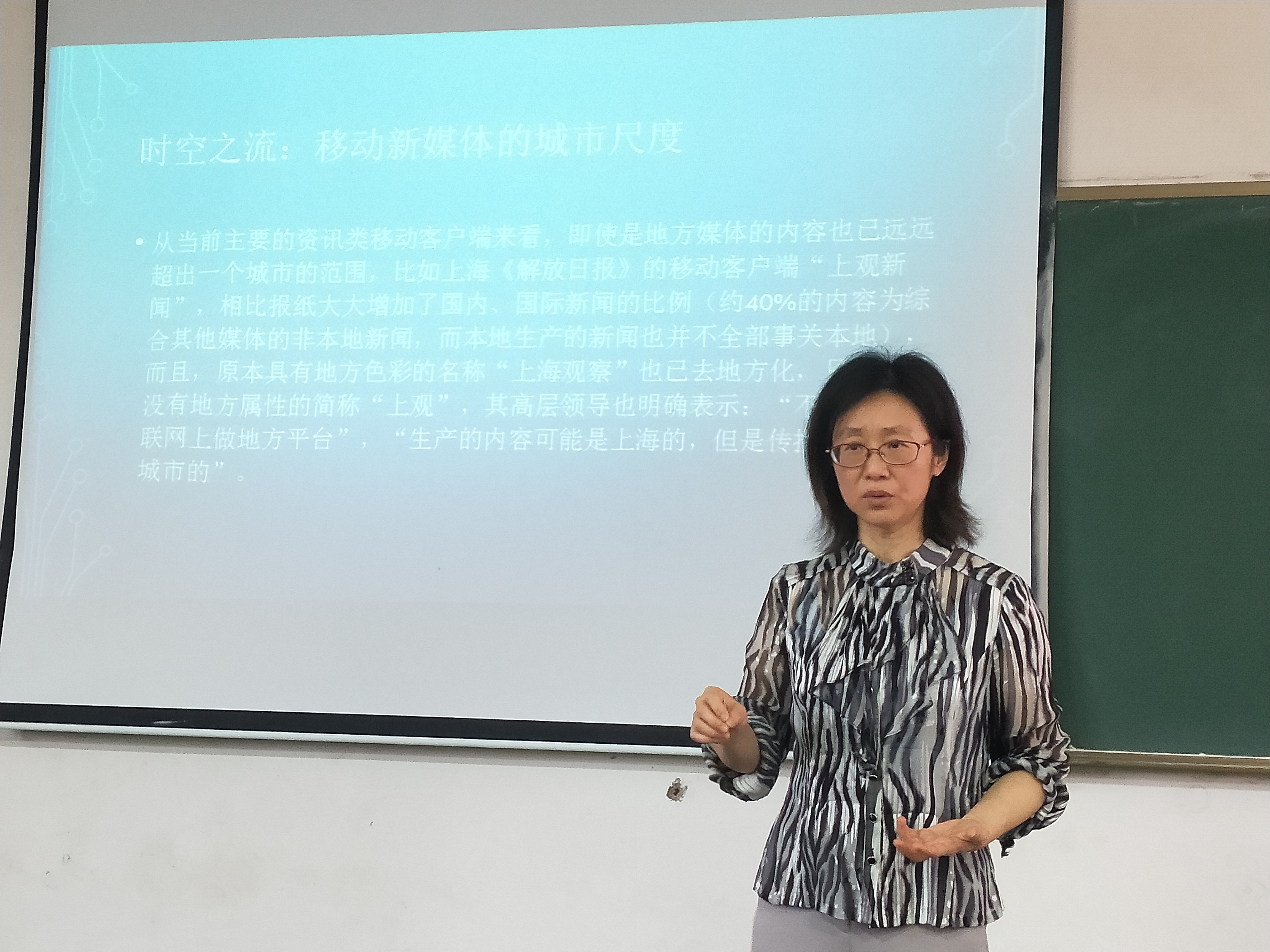 本次专题讲座以《时空机器:移动新媒体的城市再造》为题并以“上观新闻”移动客户端为例。讲座伊始,谢静教授首先为同学们理清了整体的条理与脉络,并提出了有关本次讲座的三大问题:“移动新媒体如何构造城市世界?媒体转型如何改变了传统的时空方式?作为城市党报的新媒体产品,‘上观新闻’构造了一个怎样的上海?”而后,谢静教授从移动新媒体的城市尺度、新闻时空的转型与转译、城市媒体的地方沟通性等三个方面展开了详细讲述。讲述过程中,谢静教授将高深的知识转化为可知、可观、可感的通俗理论,极大契合了广告学专业的学习框架,使同学们在听讲的过程中也能有余力与谢静教授产生良性的互动,极大活跃了课堂气氛。最后,谢静教授为同学们做了一个简练的讲座总结,回顾了讲座内容,并诚挚邀请同学们提出问题,同学们积极思考并提问,提出了诸多拥有现实意义的问题,谢静教授认真回答问题并给予提问的同学称赞与鼓励,极大提升了同学们的自信心。至此,本次讲座在同学们的热烈掌声中圆满结束。