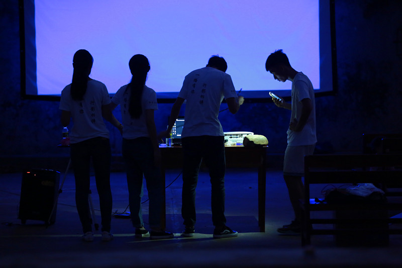7月9日上午,实践队员们将投影、幕布等设备及电影资源带入龙梅村,在龙梅村村委会的协助下,实践队员向村民进行了活动宣传,并搭建电影放映场地,组织放映电影。在活动宣传中,队员们利用村里的广播即时播报晚上放映的影名、时间、地点,最大限度的告知广大农民群众;同时,队员们也会收集群众资料,了解群众的观影需求,合理的安排每天的影片播放。活动启动当晚,实践队员选择放映动画片《疯狂动物城》,吸引了村子里孩子的目光,整个放映场地成了少年儿童的乐园。在后续几天的放映中,队员们根据村里不同年龄段的观影需求,选择放映了动作片《智取威虎山》,幽默温情的剧情片《飞越老人院》。这些影片的播放,多层次、多方面的给龙梅村的村民一个窥探不同世界的窗口。