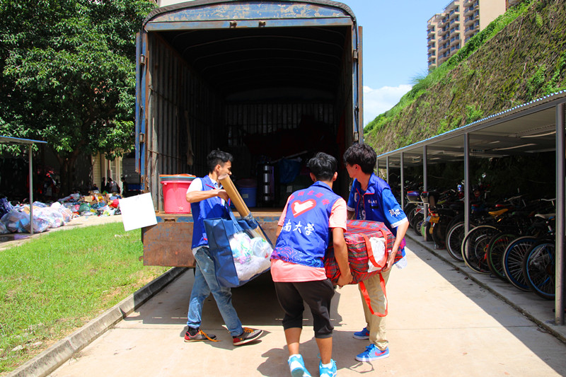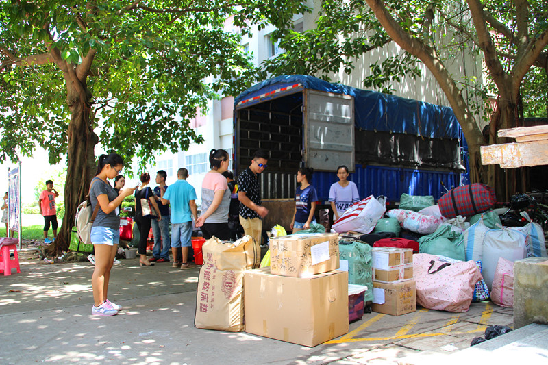 14点整,搬运工作正式开始,货车依次停靠在校道,同学们按时将行李搬至寝室楼下。烈日炎炎,志愿者们忙碌的身影穿梭在女生公寓,各班男生也积极主动地帮助女生搬运行李,协助打包、贴标签、询问注意事项。尽管行李堆积如山,尽管自己汗流浃背,他们也毫无怨言。同学之间也互帮互助,尽显黑料正能量