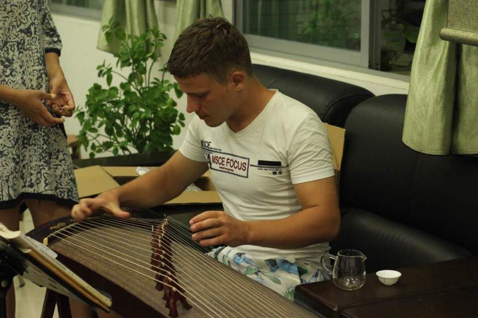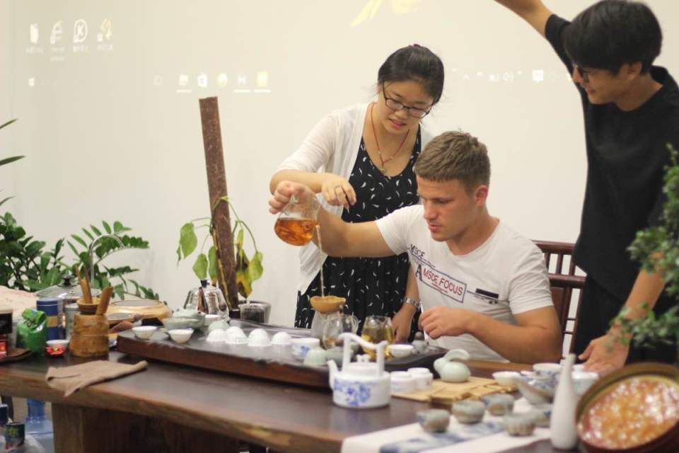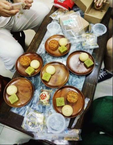 中秋节自然要品尝月饼,国学社为同学们准备了各种口味的月饼,在品尝之余,还让留学生朋友们猜馅料,并对月饼的种类进行了讲解。月夜轻飏,微风穿过明亮的A202室,留学生朋友们在国学社同学的帮助下体验茶艺过程和古筝弹奏,还有吴雅琪同学带来的古筝演奏压轴亮相。