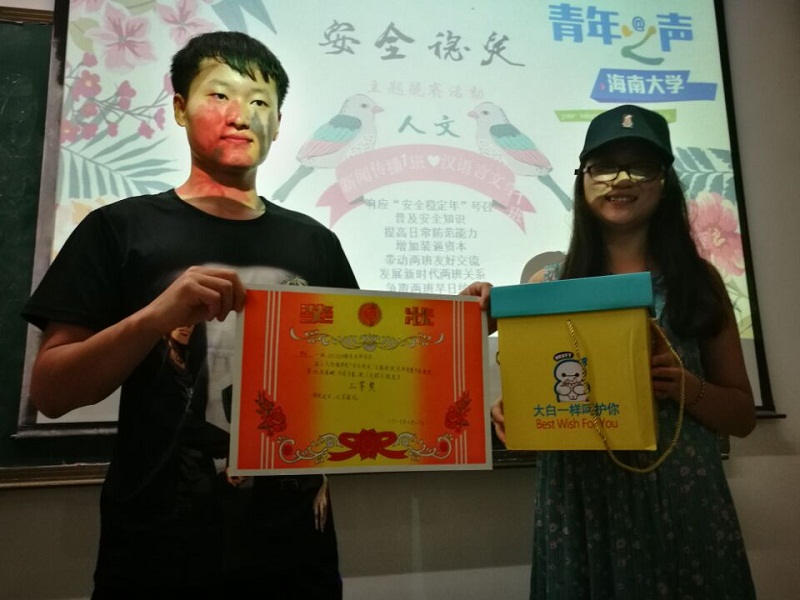 城西校区4A05顺利举行。2016级新闻传播类1班和汉语言文学类1班全体同学出席参加,学工办王俊延老师和汉语言文学类1班班主任助理钟宁同学担任嘉宾参加了活动。 活动伊始,王俊延老师就近期各大高校频发的安全问题做出提醒,对重要的安全事项进行了强调,并提醒同学们谨记安全注意事项,提升安全防范意识。随后,同学们以竞赛的形式,分别运用视频播放,相声,小品,ppt宣讲等方式对“食品安全、财务安全、交通安全、人身安全、防传销、防火、放电、防邪教、防溺水、防电信诈骗、防毒品、防艾滋”等方面的安全问题进行着重宣传。同学们积极参与讲解和互动,现场气氛热烈。 本次活动采用同学们亲自参与和互助学习的方式对班级同学们进行安全教育,让分门别类的安全知识通过寓教于乐的过程传授给同学们,极大的激励了同学们的学习热情。同学们在此次活动中不仅锻炼了自己的综合能力,更增长了安全知识。