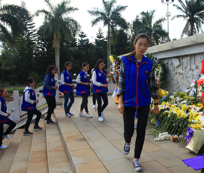 2017年4月2日,清明节前夕,为缅怀革命先烈,继承并弘扬革命抗战精神,彰显人文学子积极承担社会责任地良好精神风貌。16级中文二班团支部组织广大青年团员到海口市金牛岭烈士陵园祭扫革命先烈。2016级辅导员王俊延老师、班主任王森森老师陪同前往参加此次祭扫活动,活动由团支部书记郭瑞鹏同学主持。