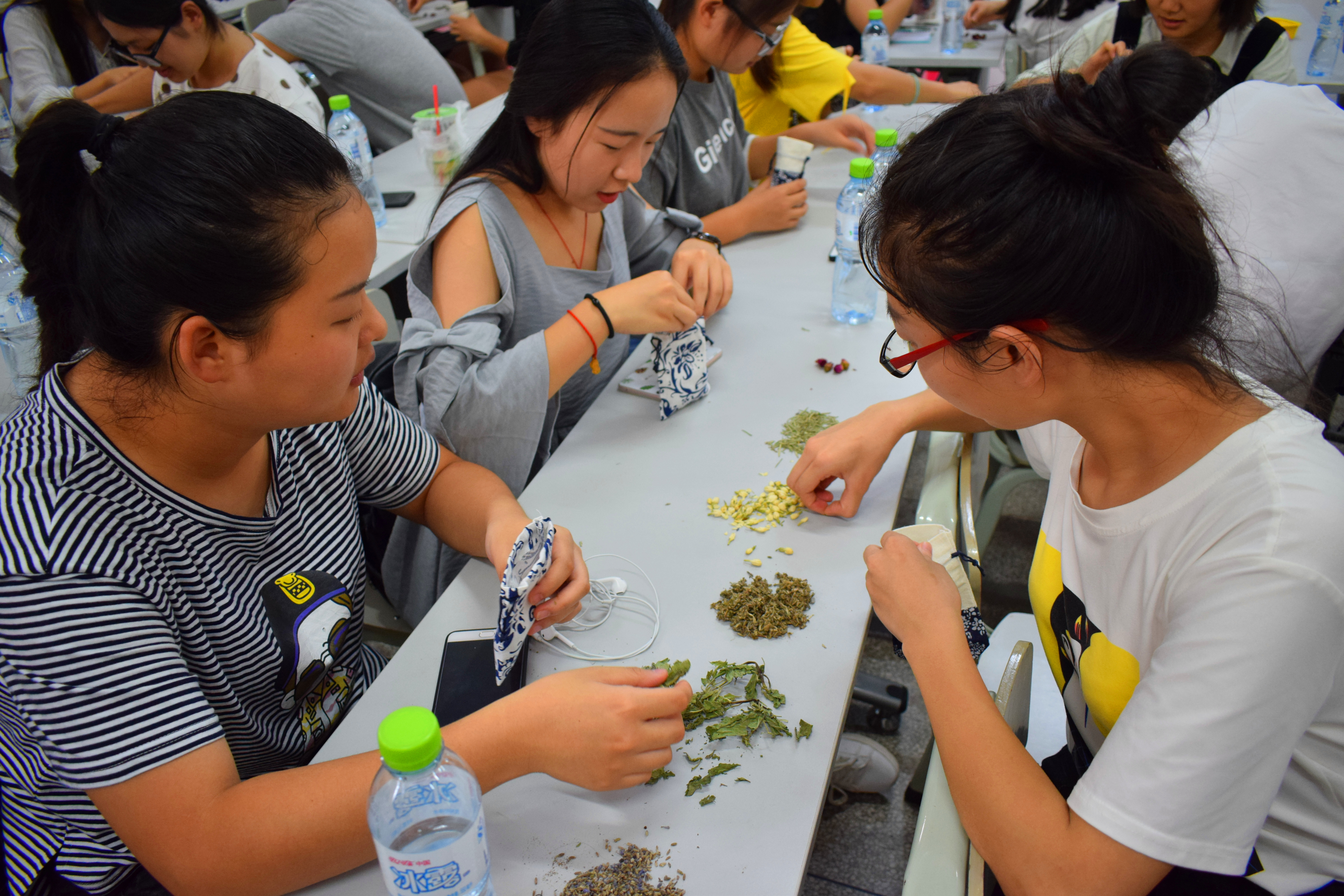 参与活动的同学们在制作端午节香包