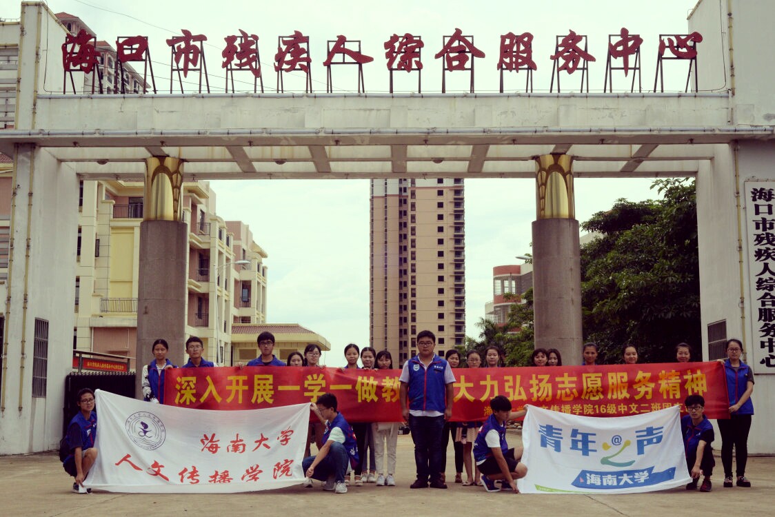 人文传播学院2016级中国语言文学类二班团支部于5月15日赴海口市金色儿童智障(孤独症)康复训练中心开展关爱自闭症儿童志愿服务活动。