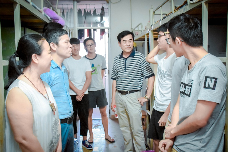 女生宿舍和男生宿舍进行了走访。 在走访中,院领导老师分别询问了同学们的生活和学习情况,并与同学们亲切交谈。认真听取同学们提出的问题和建议,并提醒大家关于用电安全、饮食安全等安全知识,鼓励同学们养成良好生活习惯,勤奋学习,努力进取。针对于学生提出的有关考试安排,假期时长等问题,华世佳书记给予解释说明;针对于同学们的日常生活情况,刘复生院长进行了安全教育提醒;针对于同学提出的有关创业的问题孙晓媛副书记给予说明、引导,获得在场学生的热烈掌声。 通过走访,增进了学院师生的情感交流,使学院领导和老师们进一步了解了同学们的生活现状,也使同学们深深感受到了学院的关心爱护。同学们纷纷表示决不辜负学院和老师的嘱托,一定会努力学习,积极生活。