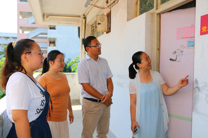 学生的学习、生活情况并仔细检查学生宿舍的卫生、居住条件、水电安全等方面的情况,也对学生们提出的问题一一进行了解答。同时,老师们及时发现了学生宿舍楼存在的安全隐患,提醒同学在楼台晒被子时千万不要在上边放置书籍重物,以免掉落砸伤楼下行人。走访的寝室内部装饰简单大方,卫生状况良好,获得了领导老师的一致好评。孙晓媛副书记在与学生们沟通交流时强调同学们一定要注意防暑、安全用水用电,遇到问题要及时与辅导员老师沟通交流。同时,孙晓媛副书记也表明了宿舍和谐生活的重要性,同学之间应互相帮助,共同成长。