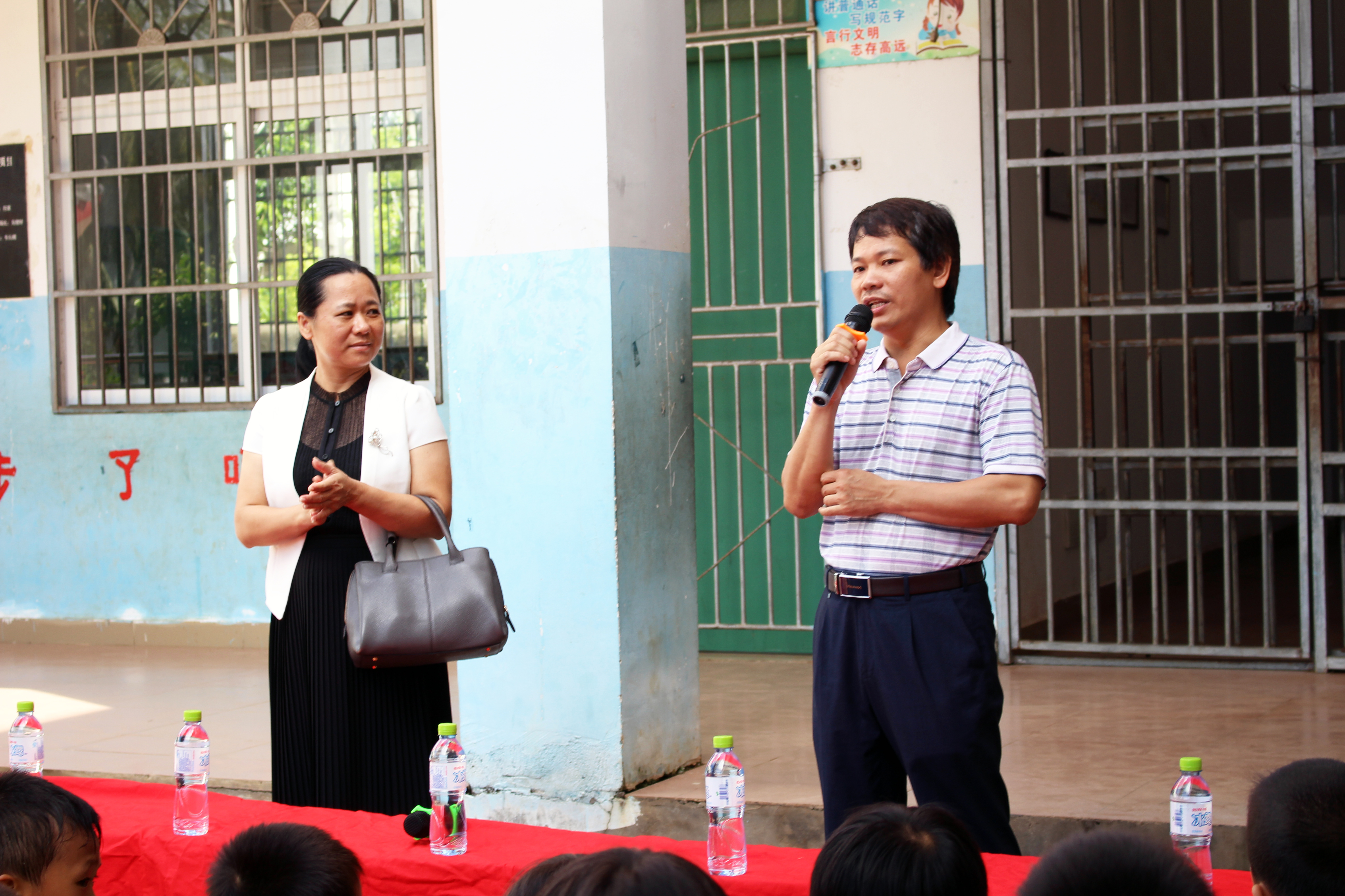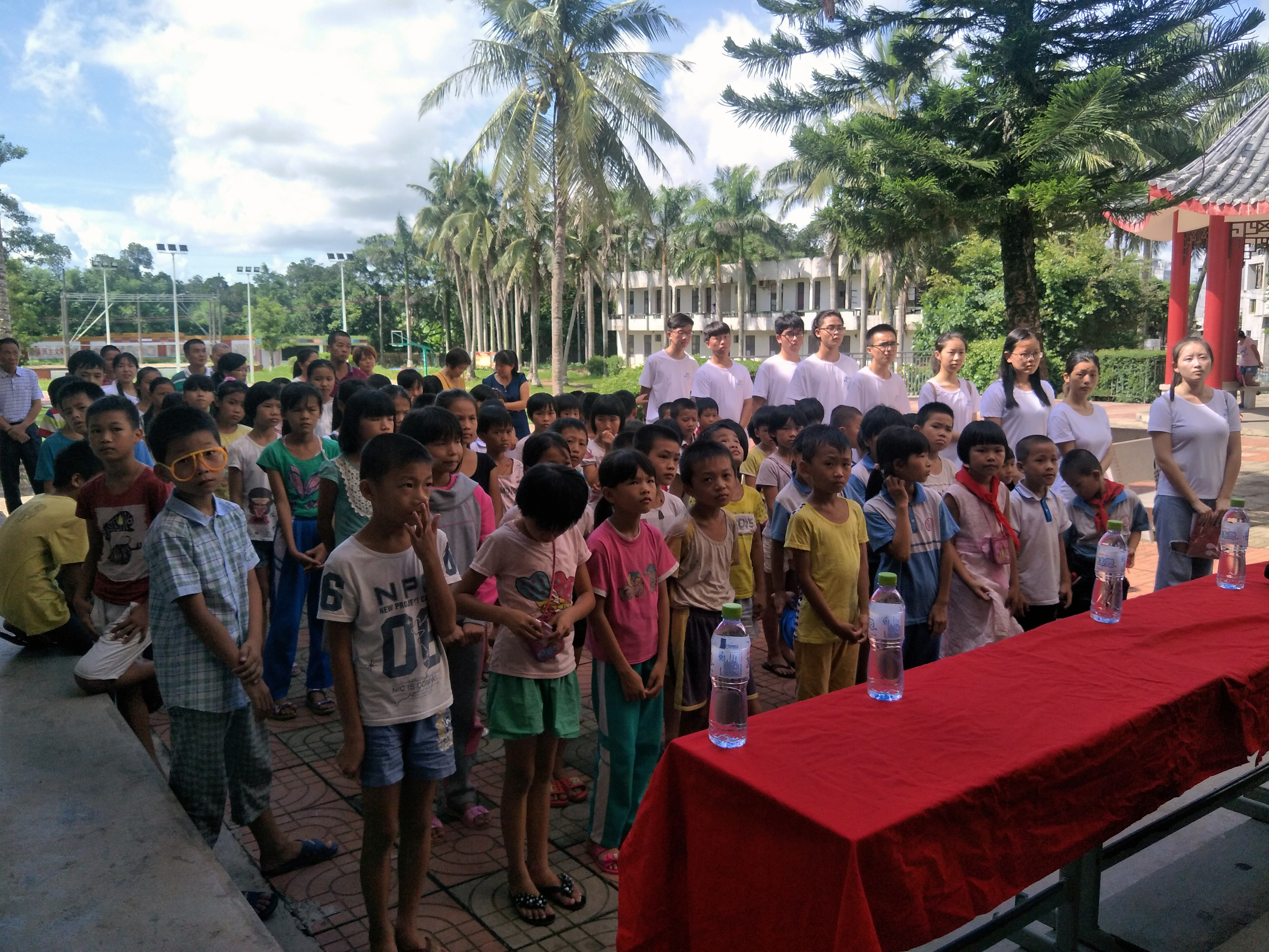 志愿者刚到学校就受到了新联小学师生的热烈欢迎。开幕式上,韦校长代表校方对人文传播学院志愿者的到来表示热烈欢迎,向共青团海口市委、共青团龙华区委的大力支持表示感谢。希望志愿者将爱与希望带入孩子心间,点亮孩子心中那盏灯,与小朋友们共同度过一个愉快而难忘的假期。实践队代表蔡文科同学代表全体成员发言,他表示,志愿者们将不负众望,努力给予孩子们更多的关爱,为他们的心灵送上关心和安慰,让孩子们在成长的路上,多一份助力。最后,全体领导老师及志愿者们共同为孩子们分发了爱心文具包和小礼品。