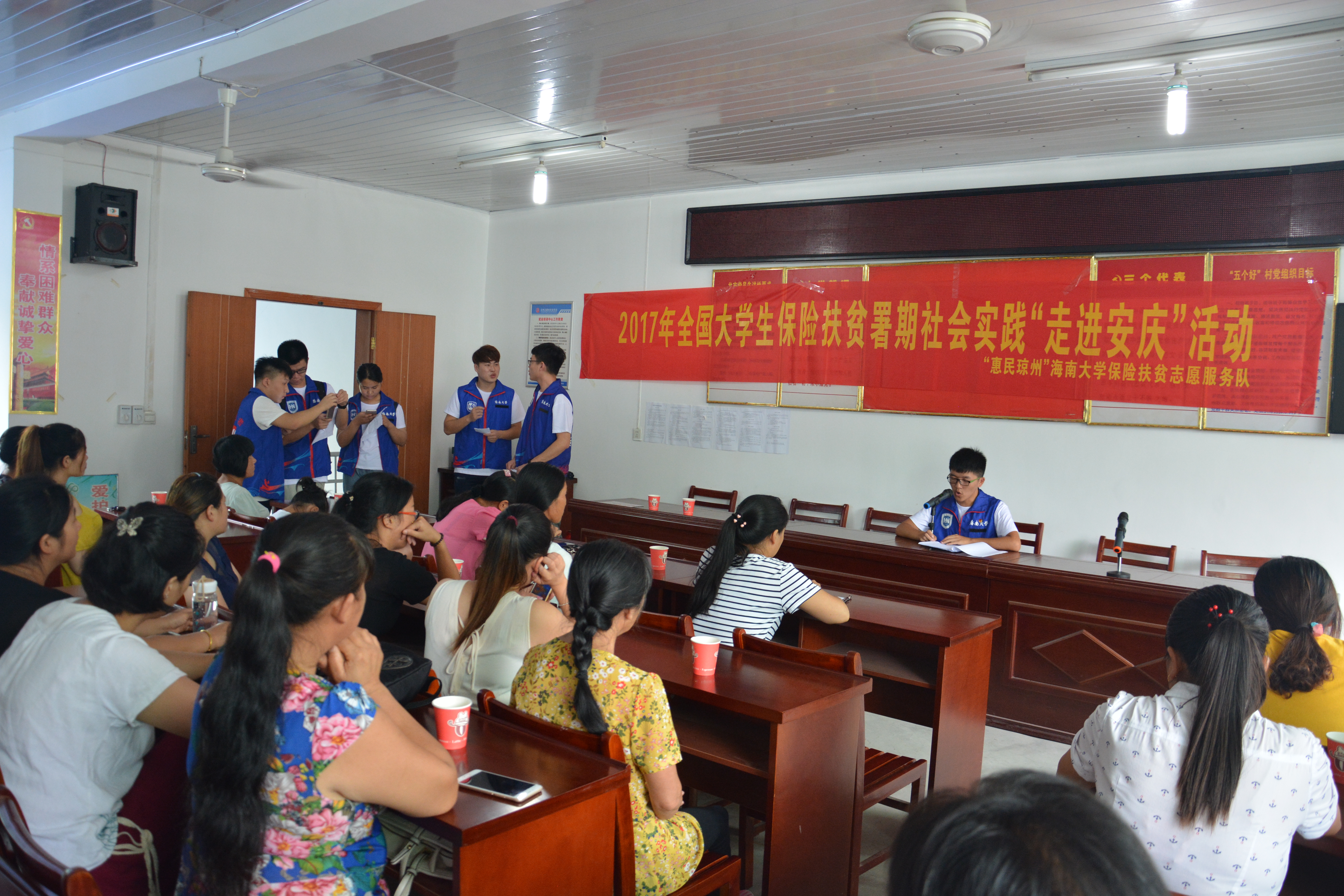 保险扶贫志愿服务队在岳西县白帽镇双畈村开展大学生保险扶贫暑期社会实践活动。