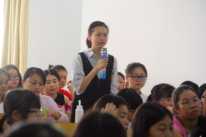 创新创业优秀学生代表马鑫、吴雅琪和林静分别向大一新生介绍了各自参加创新创业的项目,分享各自的心得,并为大一新生解答疑问。