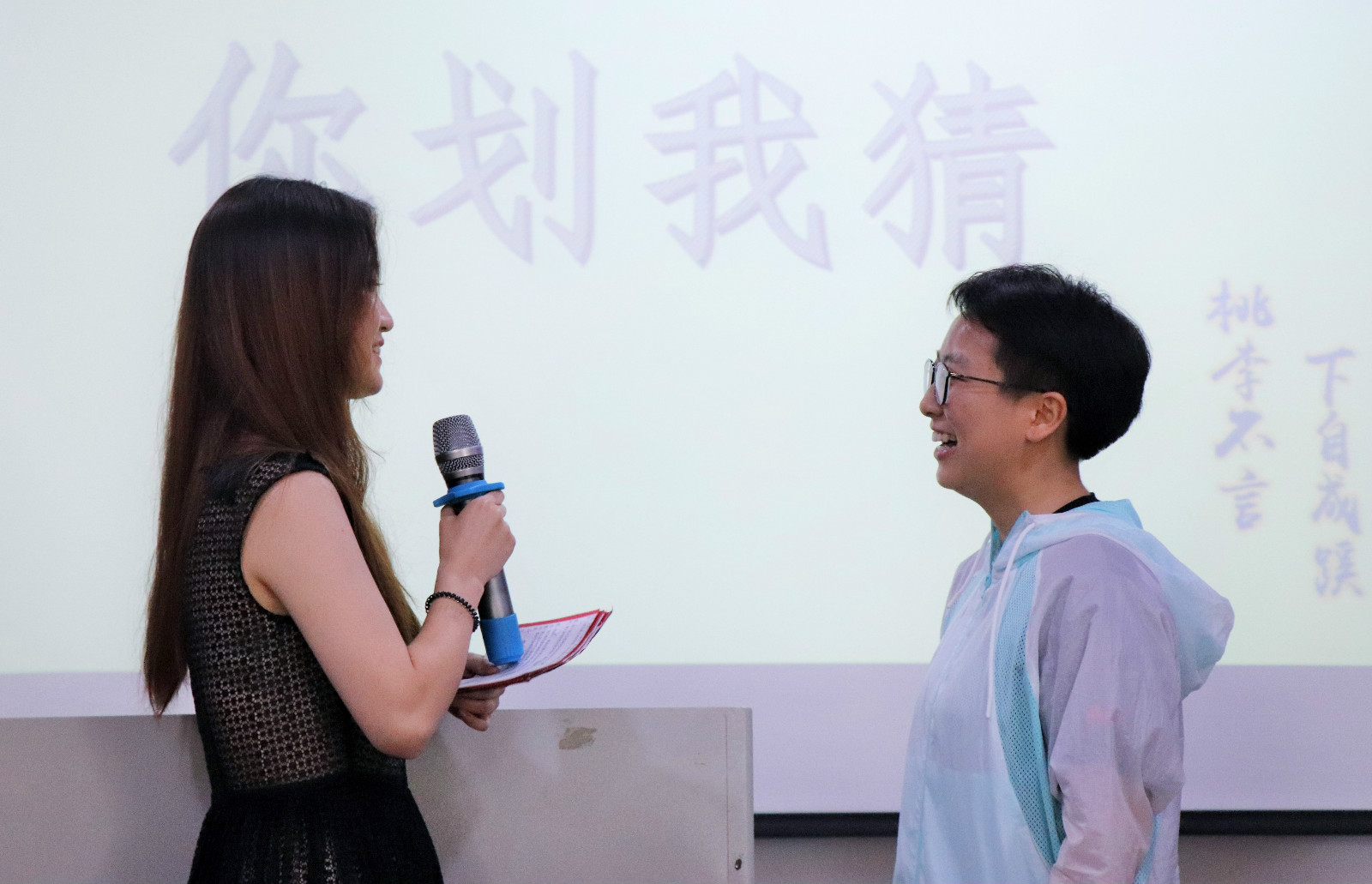 在随后的颁奖环节中,优秀学风奖一等奖获得者,辩论队的黎钦瑾同学,向大家分享了自己的学习经验。陆续颁发二三等奖后,游戏环节“你划我猜”,将此次颁奖活动的气氛推向高潮,现场笑声不断。此外,英语六级奖项获得者,康敏晴同学也上台领奖并分享了她学习英语的经验。部门优秀学风奖被团委社会实践部收入囊中。