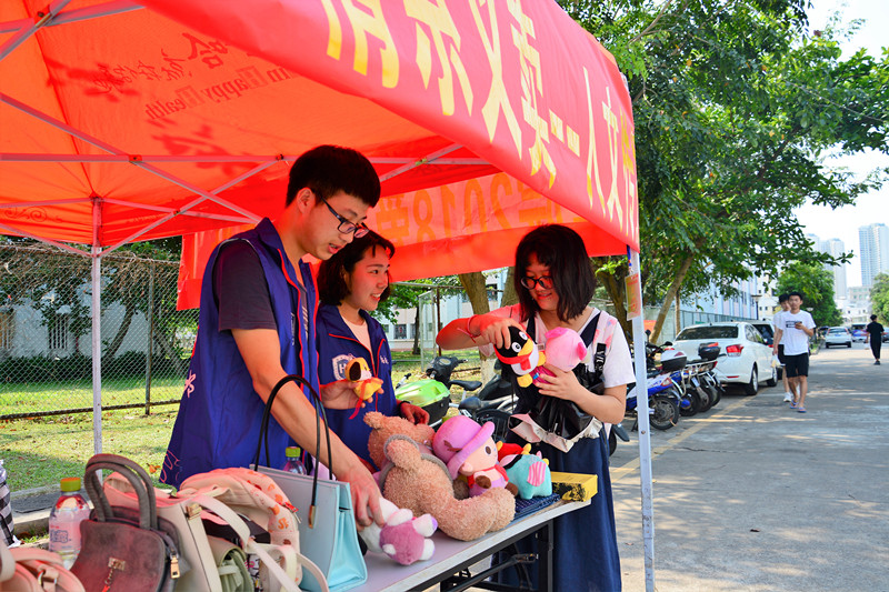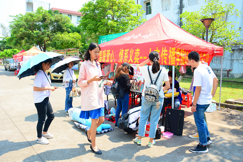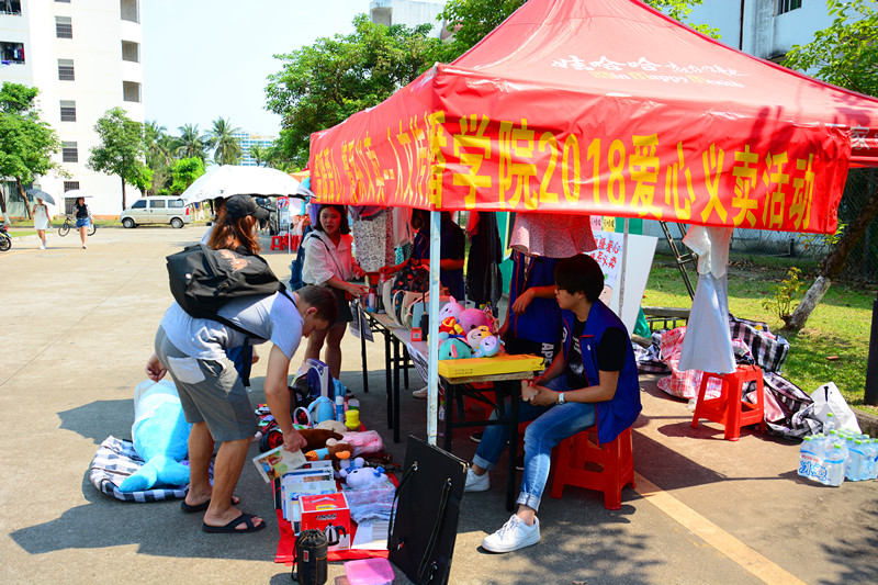 海甸校区第五食堂门口与椰林小道组织开展了“温暖爱心,情系义卖”人文传播学院2018爱心义卖活动。