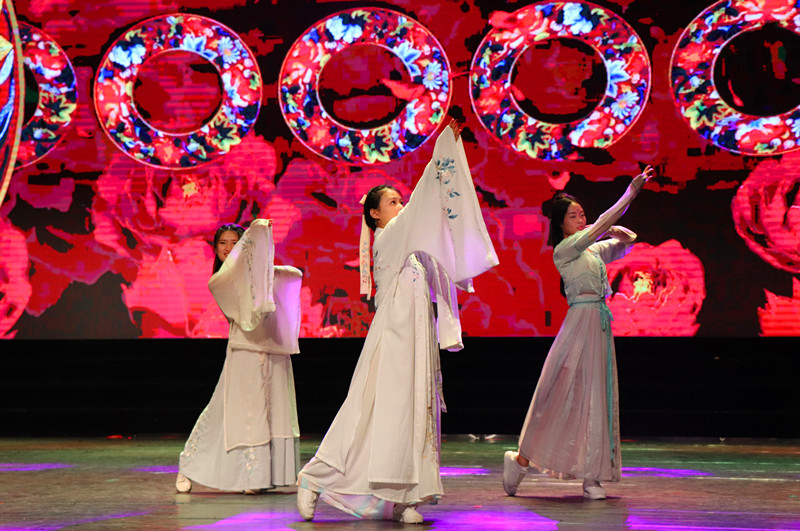 诵读等校园文化活动中的佼佼者,通过经典诗篇朗诵、获奖优秀诗歌诵读、民谣、汉服走秀及多类曲艺形式表演充分诠释了诗歌独特的艺术之美和人文气息。整场活动诗歌乐舞交织,古典与现代并蓄,为在场的观众带来了一场震撼的视听盛宴。