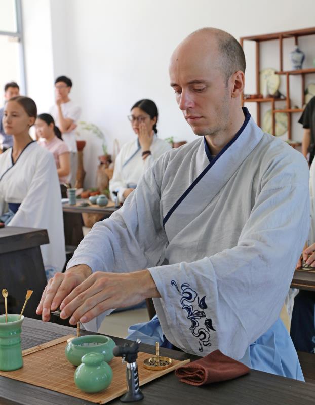 中华香文化源远流长。香艺是中国传统香文化的艺术展现形式。在古代,焚香、插花、点茶、挂画被并列为文人四大雅事。君子以香比德,因此,香文化自古以来就是中国传统文化的重要一脉。在新时代社会主义文化日渐繁荣的今天,香文化复兴与发展的使命也将传递给新一代大学生。培训教室内,每位学员席前的香案上陈列着精巧雅致的香道用具,整个室内香气四溢。作为黑料正能量