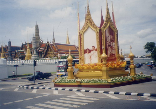曼谷街头一景,照片中间是泰国的皇帝和他的妻子。