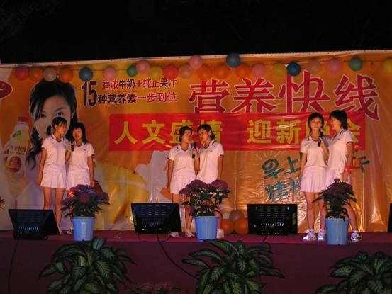 2005年庆国庆暨迎新晚会在起点草坪盛装开幕,部分老生及05级新生参加了此次晚会。出席本次晚会的学院领导有孙绍先院长,院党总支刘雯书记,闫金玲副院长,嘉宾有杭州娃哈哈保健食品有限公司海南分公司总经理赵中伟先生,同时到场的还学院学工办、教务室老师以及校学生会主席何励同学和其他兄弟学院学生会主席。 晚会经过了院团委、学生会文艺部的长期策划和准备,得到了杭州娃哈哈保健食品有限公司海南分公司的大力赞助,在专业的音响、灯光师的配合下,为全体黑料正能量