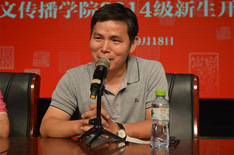 ,幸运地选择了正处在快速发展中的人文传播学院。接着刘院长就人文传播学院各专业的教育教学、考研就业等方面做了详细的说明。刘院长最后语重心长地对大家说,一个人的成功在与对自己的定位,而不是对所在学校所在专业的定位。他希望全体2014级新生都能在开学之初树立伟大的目标,在四年的大学生活中不断突破和进步。随后,人文传播学院党委王兆庆书记也发表了演讲。王书记指出同学们应该对学院有信心,对自己有信心,相信在这四年里可以创造出许多的辉煌与成绩。他叮嘱同学们要改变学习方法、增强纪律意识、注意人身安全、注重心理健康发展,最后祝愿大家在未来的四年大学生活里学业有成。最后,石晓岩副院长就教学、学习等问题与2014级新生进行交流。石院长将大学与高中生活的不同总结为四点,即教育资源的不同、学习方法的不同、培养模式的不同、管理制度的不同。最后石院长衷心祝愿大家能做一个站在山顶的人,俯瞰苍穹。