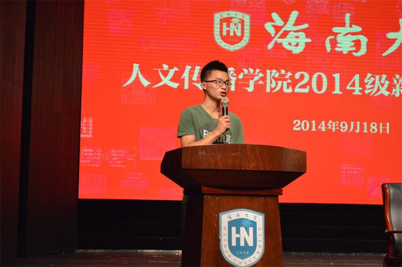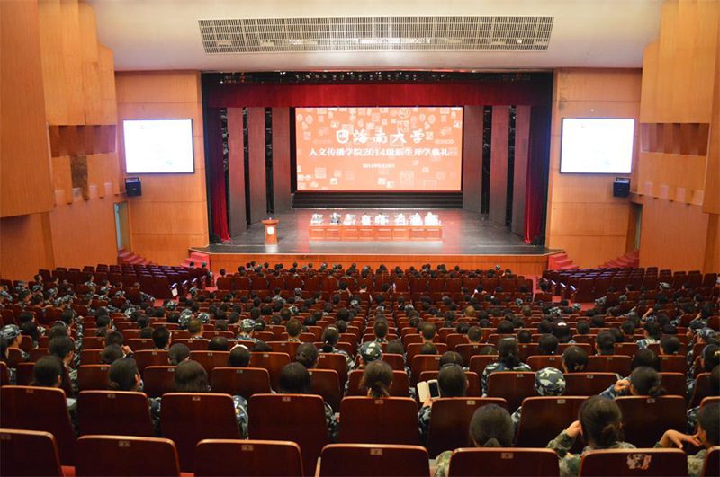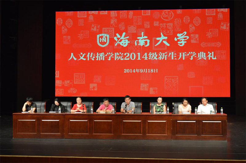 思源大礼堂隆重举行。出席本次活动的领导和嘉宾有人文传播学院刘复生院长、党委王兆庆书记、党委孙晓媛副书记、石晓岩副院长、中文系主任张硕果博士、戏剧影视文学系主任张军军教授、新闻与传播学系主任何晶娇老师、对外汉语系主任马荣江博士以及2014级各班主任,本次活动由孙晓媛副书记主持。