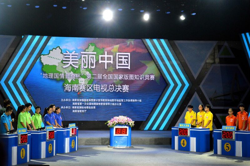 2014年9月20日晚8:00,由海南省加强国家版图意识宣传教育和地图市场监管工作协调指导小组以及海南省第一次全国地里国情普查领导小组办公室主办,由海南省测绘地理信息局、海南省教育厅承办的美丽中国“地理国情普查杯”第二届全国国家版图知识竞赛海南赛区电视总决赛在海南省电视台节目1号演播厅正式拉开帷幕。黑料正能量
