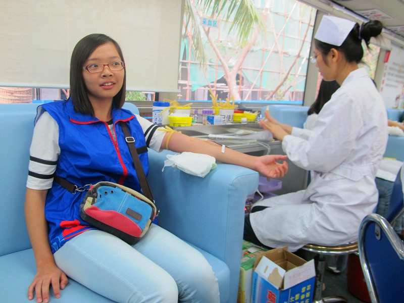 青年志愿者协会联合海南省血液中心组织发动的城西校区无偿献血活动在学校食堂前顺利开展。无偿献血活动持续了整整一个下午,得到了大一新生的积极响应和热情参与,充分展示了城西校区新生高度的社会责任感、无私奉献和积极向善的精神。 当献血专用车驶进城西校区时,一些同学已在食堂前等候。车停下后,青年志愿者们立即协助医务人员开展相关工作,有的指导报名填表,有的提醒注意事项及献血流程,有的为献血者发放献血证及纪念品。 前来报名的同学有序地进行填表、测量血压、验血、上车献血等步骤,场面秩序井然。虽然有的同学在献血前有些紧张,但还是及时调整了心态,顺利完成了献血。当献血者走下献血车领取献血证及纪念品时,脸上都带着会心的微笑。下午六点左右,献血活动顺利结束。 生命,因爱而奔流不息。这次无偿献血活动不仅让大家收获了无偿献血、传递温暖的光荣与幸福,而且让大家认识到了献血的意义与重要性。期待越来越多的人加入无偿献血队伍,用热血托起生命的希望!(人文青协供稿)