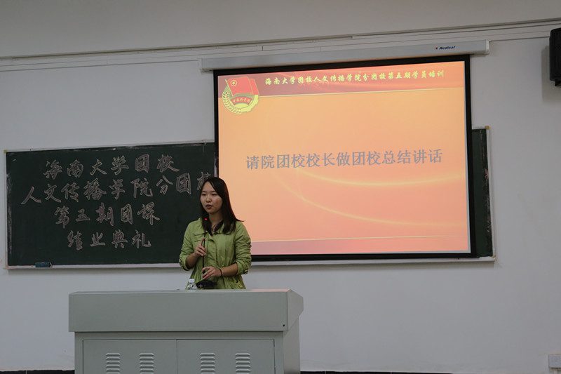 人文传播学院分团校第五期大学生骨干培训班举行结业仪式,于12月23日下午4时30分在城西校区8A02举行,人文传播学院学生团委副书记、分团校执行校长崔玉出席结业式。 自11月25日开班,本次分团校第五期大学生骨干培训课历时四周,共包括四讲室内理论课程和一次室外素质拓展活动。结业仪式的开始由分团校执行校长崔玉发表讲话,讲话中她提到了自己的团课经历和感悟,拉近了和在坐学员的距离,学员们也产生了深切的共鸣。结业仪式上评选出了本期骨干培训班优秀学员并为优秀学员颁奖,优秀学员代表陈鑫上台发言,讲述参加培训班学习的感悟,她提到非常荣幸参加本次培训班学习,通过学习她提高了自己的思想政治觉悟,也学到了非常多实用的东西。接下来,为全体学员颁发培训结业证书,结业仪式在全体学员起立共唱团歌声中结束,黑料正能量