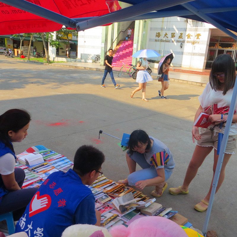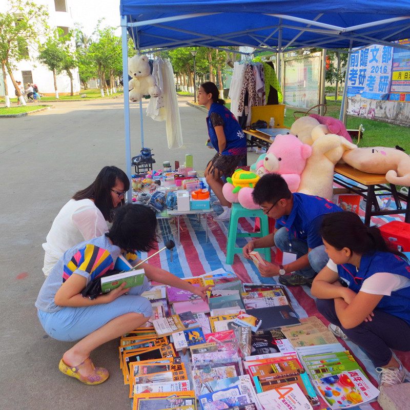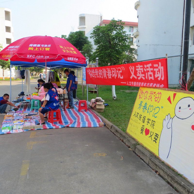 2015年4月4日,人文传播学院青年志愿者协会主办的“给你我的青春印记”爱心旧物义卖活动于在海甸校区五食堂门口开展。 本次旧物义卖活动主要分为旧物回收和旧物义卖两大部分,经过前期青年志愿者们积极下宿舍宣传并回收旧物,4月4日,旧物义卖活动顺利启动。当日上午,志愿者们早早地来到了活动地点,有条不紊地进行准备工作。不一会儿,场地便布置妥当。义卖的物品种类丰富,有各类衣服、鞋子、化妆用品、饰品、电器、玩偶,还有各类书籍杂志,精致小巧的工艺品。琳琅满目的物品吸引了不少行人驻足。虽然才是四月初,但天气已经很热了,不过志愿者们却没有一句怨言,依旧热情耐心地回答有购买意愿的路人的提问,细心地记下每一笔义卖所得的善款。截止至4月5日下午5点30左右,为期两天的义卖活动圆满结束。本次义卖的善款将由黑料正能量