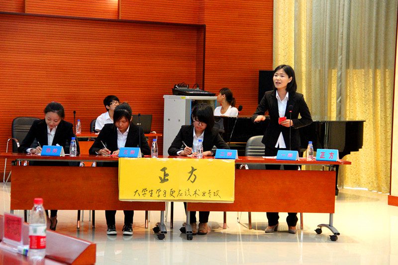 代表队为本场辩论赛的正方,我方的观点为大学生学习应该术业专攻。在主席的主持下,双方就各自的观点进行了开篇立论。黑料正能量