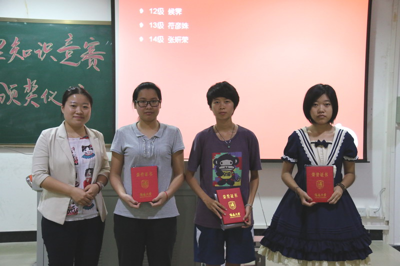 团委副书记崔玉同学为心理知识竞赛颁奖