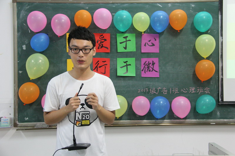 第4教学楼109如期举行。来自经济与管理学院的心理辅导员王昌纯老师、海洋学院的沈丽岚老师、艺术学院的吴琼老师,以及人文传播学院学工办王俊延老师担任嘉宾出席了此次活动。2013级广告1班心理委员张凯同学担任主持,2013级广告1班同学参加了此次活动。 活动开始前,张凯同学首先介绍了到场嘉宾,并邀请学工办王俊延老师对班会主题“友爱于心,善行于微”进行阐述。王俊延老师指出;“友爱于心,善行于微。就是告诉我们要时刻以友爱的态度对待身边的每一个人,一个暖暖的微笑,一句鼓励和加油。一个看似简单的付出就会使我们收获意想不到的快乐和友情”。随后活动进入第一个环节“友爱,有你” ,同学们在教室内围坐一圈,对含有“爱”字的歌曲进行歌唱接力,没有接上的同学,则按规则要求对自己的室友或班级同学说出一段表达感谢的话。在这个环节中同学们放声高唱展现自己的同时,更加在同学的点滴致谢中收获了温暖和感动。 随后,在“说出你的秘密?猜猜ta的声音”环节中,同学们在带有编号的纸条上写上自己或好友人知的糗事、对朋友同学们的感谢、相对同学们说的心里话。在主持人的引导下,同学们随机组队,进行互动。这一环节中,有欢笑、有拥抱,更有同学们纷纷表达对班级同学,对身旁好友的爱和感谢。活动的最后一个环节是“摇一摇 · 心理知识竞答”,在这个环节中,主持人张凯邀请嘉宾老师和同学们拿出手机进行微信摇一摇心理知识抢答通过这一环节向大家普及了大量的心理知识。整个活动中,同学们笑声不断,表现踊跃。 友爱于心,善行于微。让我们一起用友爱的态度对待身边的每一个人,在细微之处彰显大爱。我们也会在这个过程中收获快乐、幸福和友爱。 新闻部 索金炜