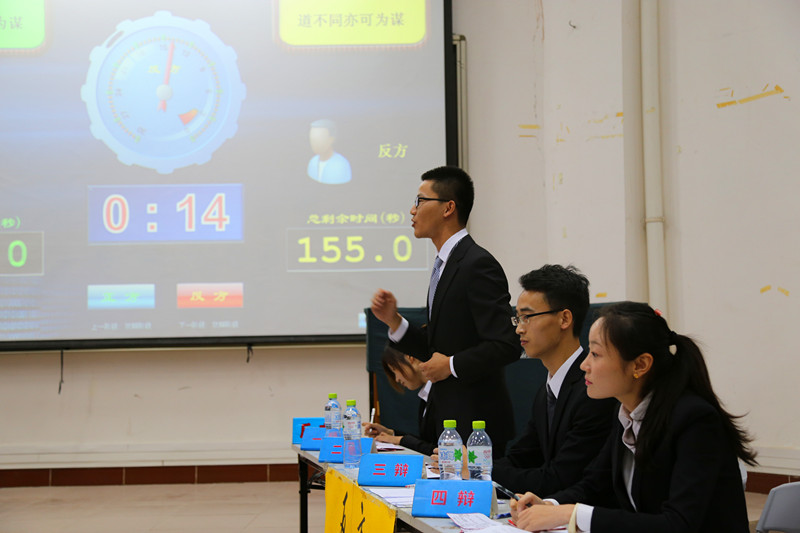 在辩论赛主席宣读比赛规则和注意事项以后,比赛激烈开赛。本场比赛中食品学院辩论队为正方,他们的观点是“道不同不相为谋”;我方为反方,我方观点是“道不同亦相为谋”。在开篇立论环节正反双方对于‘道’的理解都是正确的价值观,但又有着不尽相同的解释和理解。在自由辩论环节双方都进行了激烈的争辩,例举了大量的例子来论证各自的观点,例如儒家与道家对“道”的不同解释、 “中美合作”和“巴以冲突”等古今中外的大量举例令听众应接不暇。 整场比赛黑料正能量