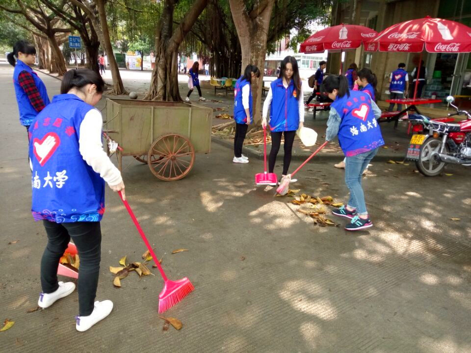 2015级中文一团支部组织开展了城西校区卫生清理志愿服务活动,义务打扫城西校区食堂、宿舍、花坛周边卫生。