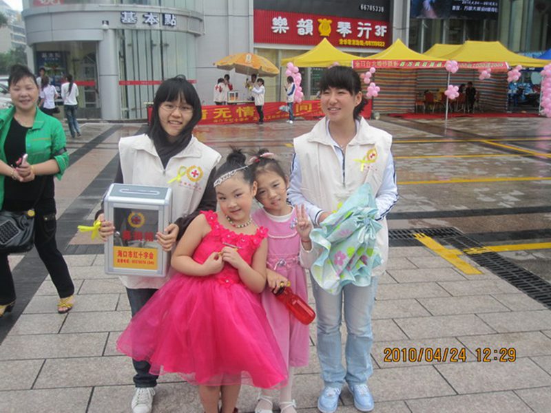 4月24日,人文传播学院2009级对外汉语专业同学自发组织起来,与海口市红十字会协会取得联系后,走上街头,为在“4·14”地震中受苦受难的玉树同胞们募集资金,捐献一份爱心。
