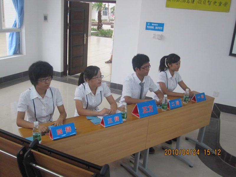 辩论赛主要分为开篇立论、攻辩环节、攻辩小结、自由辩论、总结陈词和观众提问六个环节。开篇立论中,正方一辩李禾臻紧紧围绕“知识是推动经济发展的原动力”这一核心观点阐明自己的立场,反方一辩则冷静透彻地用现实数据说明了海南岛建设急缺资金的现实,从而论证了该方观点。最为精彩与扣人心弦的就是自由辩论环节,正方二辩霍辉和三辩胡艳秋一热一冷相互配合,用充分的论据与精辟的论点与反方辩手展开了犀利地辩论。最后,评委就本场辩论赛的总体表现作了点评,肯定了选手们的辩论实力,并鼓励大家再接再厉。
