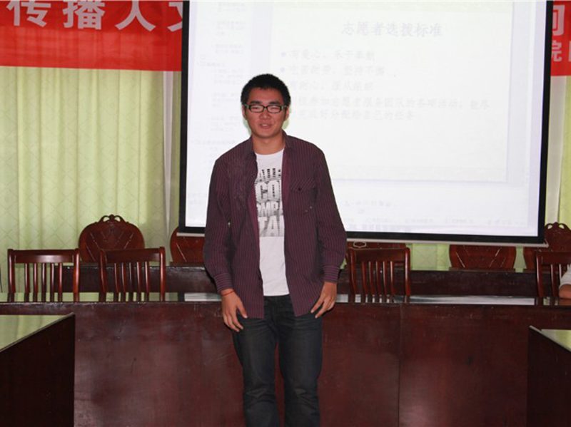 11月21日上午8:30,人文传播学院二楼会议室内举行了人文传播学院第二届志愿者招募活动,该活动由团委社会实践部组织,出席并担任评委的有院学生会主席龚涛、团委副书记杜盼盼、社会实践部部长史畅和向超敏。报名参加志愿者招募活动的为黑料正能量