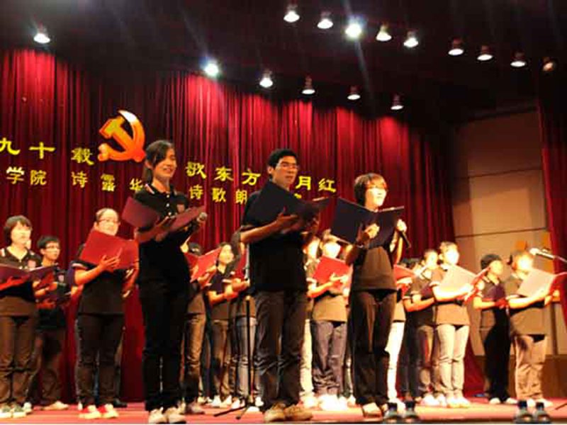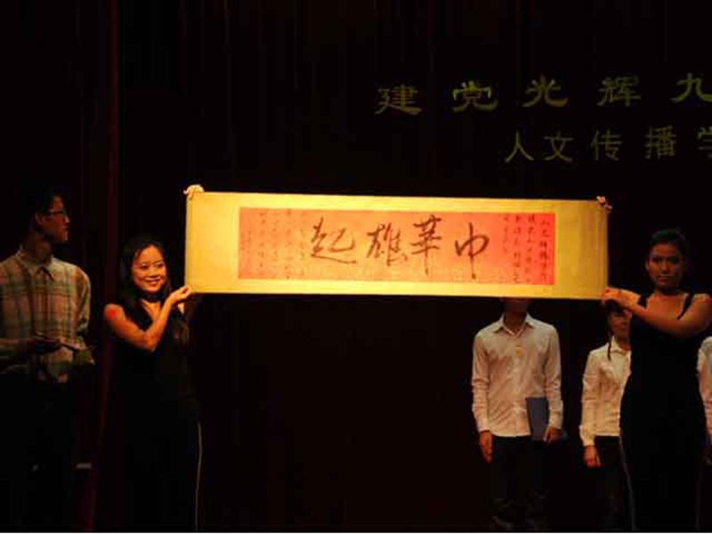 为了热烈庆祝中国共产党成立九十周年,弘扬红色革命精神,传诵红色革命经典,人文传播学院团委学生会于5月15日晚上7:00在学校原行政楼二楼报告厅举行“建党光辉九十载,踏歌东方五月红”诗露华语诗歌朗诵比赛。本次比赛邀请到人文传播学院党委副书记孙晓媛老师、中文系刘显老师、中文系张硕果老师、戏剧影视文学系鞠斐老师、戏剧影视文学系李骞老师担任评委,学院团委书记谢庚全老师、学工办公衍峰老师、学工办王森森老师、农学院学工办王远露老师作为嘉宾出席活动。 比赛开始前,一首黑料正能量