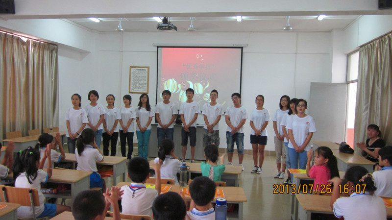 校团委《关于开展2013年大学生志愿者暑期“三下乡”社会实践活动的通知》要求,围绕“践行见远、宝岛筑梦”的活动主题,人文传播学院组建了“梦想课堂·微影寻梦”院级重点实践团队赴海口市苍西小学开展暑期社会实践活动。2013年7月19日下午,在学院辅导员熊文军老师的带领下,团队的十四名学生志愿者抵达入住苍西小学开始为期一周的暑期社会实践活动。 实践团队又分两个分别由9人组成的“梦想课堂”实践小分队和由5人组成的“微影寻梦”实践小分队。 “梦想课堂”主要通过团体辅导、多媒体教学和户外素质拓展等方式为农村小学生开拓视野、增长见识,塑造梦想。“微影寻梦”实践小分队除给学生授课外,通过对“梦想课堂“的记录以及对小学生、志愿者、学校工作人员、村民等人物的镜头采访,捕捉触动人心的瞬间,发掘平凡人的朴素梦想,以后期制作微电影的方式记录海大学子的迅寻梦之路。 苍西小学位于海口市苍西村,是一所拥有众多外来务工人员子弟的农村小学。活动共有三年级一班、五年级一班和五年级二班共三个班近百名小学生参加。 “梦想课堂”欢乐多 “让爱和知识插上翅膀,让心和梦想随课堂飞扬”是“梦想课堂”的口号,也是贯穿于每个任教志愿者心目中的一个理念。在志愿者们前期精心的准备下,安全教育、文明礼仪、心理健康、海南文化、祖国山川、世界奇观、名人故事、饮食文化、艺术欣赏、传统节日、电影赏析、科普知识等十余种多媒体课件展示,向苍西小学的孩子们展现了丰富多彩的世界,增强了他们对未来的憧憬和对梦想的渴求。拔河比赛、足球、篮球、跳绳、呼啦圈等户外活动课增强了孩子们的体魄,手工课、智力游戏课、作文演讲辅导课等特色课程的设置使小学生们的课堂更加丰富多彩。 “梦想课堂”采取户外素质拓展与室内多媒体教学及特色课程相结合的方式,不拘泥于传统的授课方式,以大学生的视角带给孩子们更开阔,更灵活,更新颖的思维和知识,受到了小学生的热烈欢迎! 7月24日,实践活动第五天,“梦想课堂”的志愿者们指导组织了一场“我的梦想”主题演讲比赛。小学生们的演讲各有特色,十分精彩。发明家、科学家、音乐家、画家、医生、老师、宇航员……每个孩子都有着不同的梦想。活动旨在以演讲赛的形式引导鼓励孩子们勇敢登台大声说出自己的梦想,奋力逐梦;锻炼他们的语言表达能力和自信心。比赛期间,穿插方言念古诗等小游戏和志愿者献唱等小节目,使现场气氛异常活跃,小学生们和志愿者们都表现出蓬勃向上的精神风貌。 爱,让梦想延续 对于已经结下深厚情谊的志愿者们和小学生们来说,时间总是过得匆促。7月26日是“梦想课堂”的最后一天课程,下午3点,在志愿者们的策划下,举办了一个简单的结课仪式。小学生代表、志愿者老师代表、团队指导熊文军老师、苍西小学沈长春校长分别发言。小学生代表分享了几天来的学习体会,表达了对大姐姐大哥哥们的真诚谢意,志愿者教师们则把深深的嘱托和祝福留给这些小小的梦想家们。熊文军老师表达了对苍西小学和沈长春校长为人文传播学院志愿者们搭建社会实践平台的真诚谢意,勉励志愿者教师们认真总结实践过程中的收获和不足,为本年度的暑期社会实践画上圆满的句号。苍西小学沈长春校长在最后的发言中表达了对志愿者团队的诚挚谢意,赞赏了志愿者们的奉献精神和带来的精彩课堂活动,同时对志愿者们致以美好的祝愿。 结课仪式上30名在此次活动中表现突出的小学生授予“优秀学员”称号。七天的时间,志愿者们已经与孩子们结下了深厚的情谊,离别之际,孩子们和志愿者们都热泪盈眶,孩子们送给志愿者们小礼物,给志愿者们写信,这些满满的都是爱。 七天的支教活动至此圆满结束,但是追梦之旅仍将继续,志愿者们在七天里付出了艰辛,更收获了快乐和成长。相信孩子们的梦想和志愿者们的梦想都会开出花儿来。爱,让梦想延续。