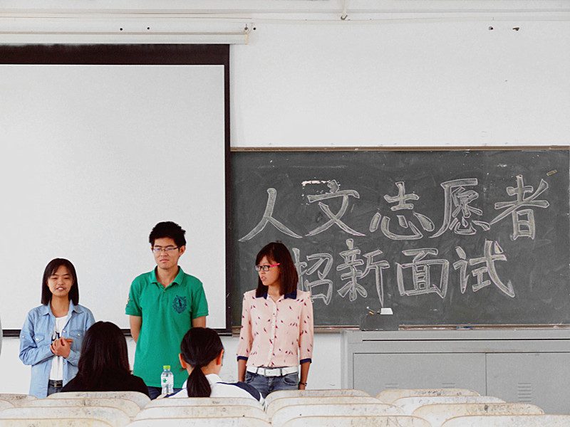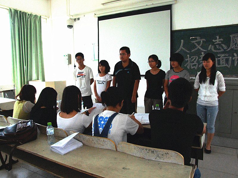 10月26日上午8时,人文传播学院青年志愿者团队招新面试活动在3教506,507教室正式举行。学院团委社会实践部部长曹毅飞、崔玉主持了本次活动,并担任面试考官。