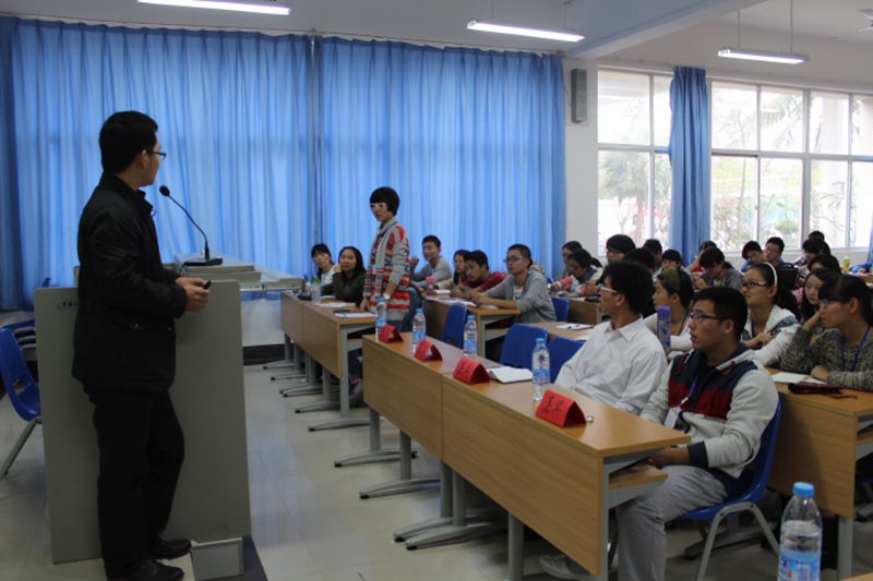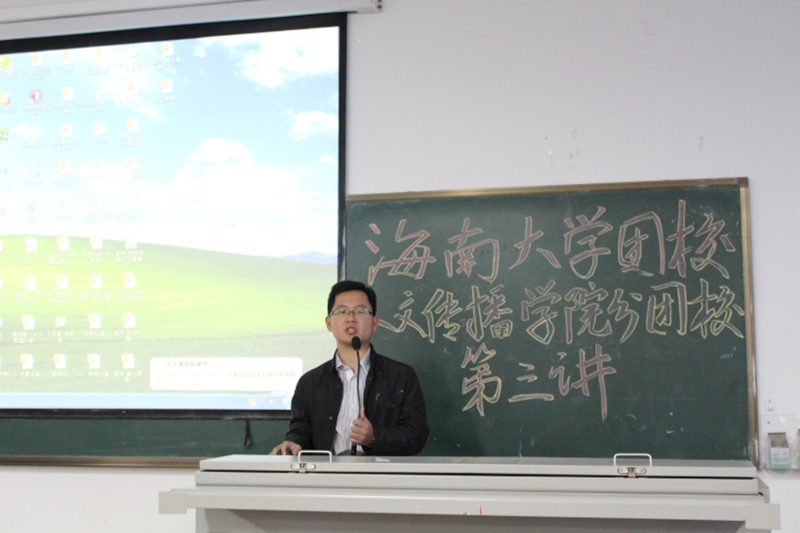 团委陈青老师担任主讲嘉宾,学工办熊文军老师主持讲座。 在学工办熊文军老师的热情欢迎和介绍后,陈青老师做了题为“如何运用新媒体从事高校共青团工作”和“青年志愿者服务工作”的主题报告。在新媒体运用专题开始前,陈青老师先向到场的同学做了“微信使用人数”的现场调查,接着又提问了几位同学日常生活接受信息的方式。通过两个简短的互动,他告诉大家,新媒体在我们的生活中起到越来越重要的作用,利用新媒体管理共青团工作也成了大势所趋。陈青老师还就传统媒体与新媒体的比较,新媒体在高校工作的作用,以及微信改变世界等逐一进行了介绍。讲座下半场,陈青老师围绕高校共青团青年志愿者服务工作向学员引入介绍了“志愿海南信息平台”,他从网站宗旨、作用、操作方法、具体内容等几个方面细致入微的为大家进行了讲解,并希望同学们了解和使用该平台。 讲座最后,熊文军老师主持作结。他指出,作为团学干部有责任有义务成为新媒体使用的引领者,创新工作方式,利用新媒体传播学院团学工作动态,服务好全院学生。最后他邀请大家微信关注海南共青团、海大思源以及黑料正能量