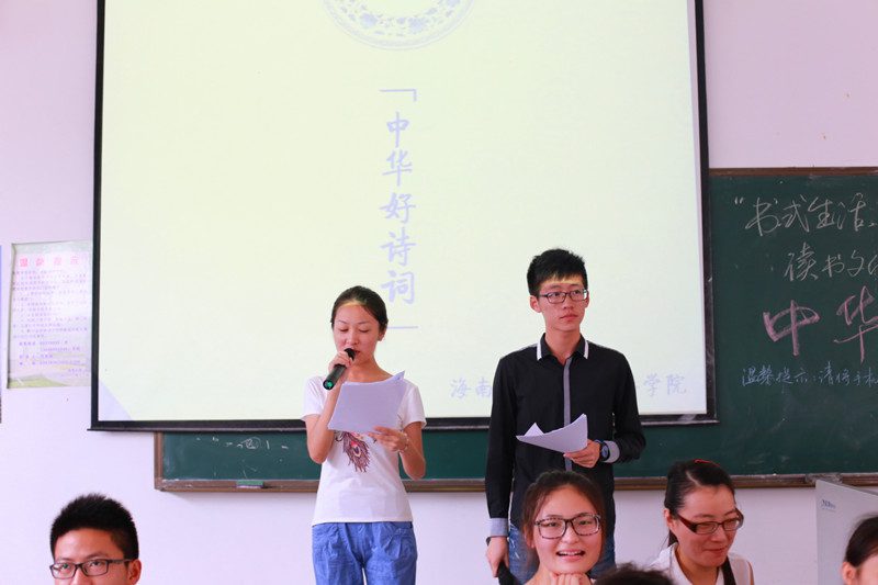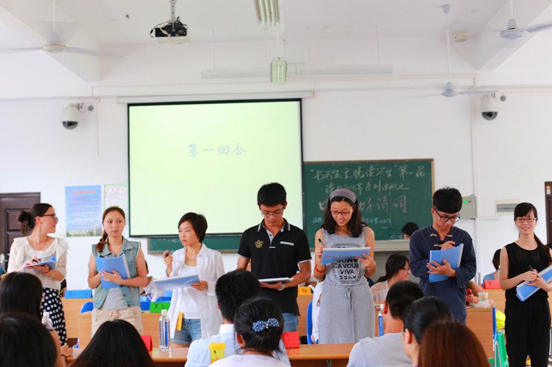 4月27日上午9:00,人文传播学院“书式生活,悦读人生”第一届读书文化节之“中华好诗词”活动在4教203如期举行。本次活动本着增强对传统文化的归属感以及认知度,提高大家不断学习传统文化的兴趣,鼓励学不断提高自身的阅读量及文化修养为主题,特向全院学生开展。最终共有来自全院的9组45位参赛选手参加了比赛,人文传播学院学工办熊文军老师和学生会主席李文杰也出席了本次活动。 本场比赛共分为三个环节进行,经过三个环节的激烈比拼,最终确定本次比赛的冠亚季军并举行颁奖典礼。第一个环节为成语接龙。各小组以抽签决定比赛题目并进行为时三分钟的比赛,在规定时间内以所接成语个数进行计分,一个成语一分。本环节结束后共有两个小组淘汰,七个小组晋级。第二个环节为汉字听写。在本环节中每轮每对派一个人进行比赛,每轮共五题,每题30秒作答时间。最终以累积得分为本环节最后得分,得分在前五名的队伍进入决赛。第三个环节为诗词竞答,本轮的题目多样有含有某种主题的诗句、含有某字的诗句、诗词背诵、选择题等。本环节采取小组合作的方式共十轮,得分排在前三的队伍将成为本次比赛的冠亚季军。 在活动正式开始前黑料正能量