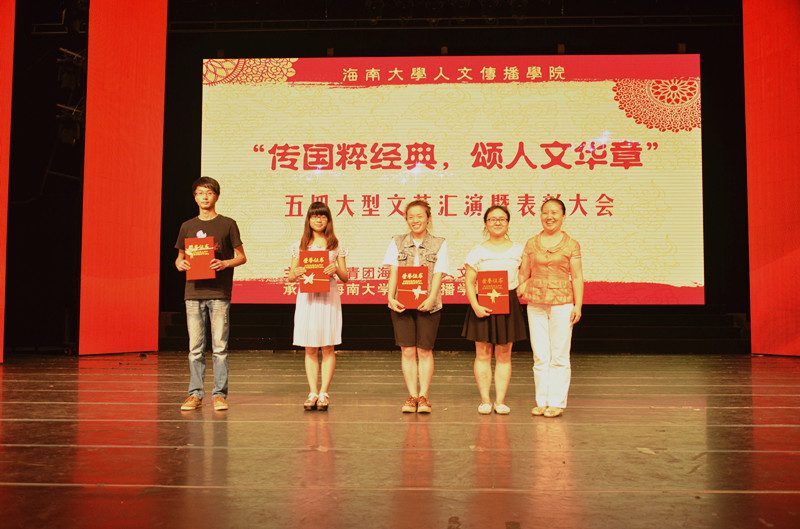 优秀青年志愿者等获奖奖项。汇演比赛经过激烈的角逐,最终,2011级广告学专业的同学们不负众望夺得了大赛的一等奖;2011级与2012级戏剧影视文学专业的同学们一同荣获了二等奖;2013级戏剧影视文学专业、2013级中文专业与2013级广告专业的同学们获得了三等奖。 传国粹经典,中华文化放光彩;颂人文华章,青年才俊数风流。晚会在团学成员大合唱《光荣啊,中国共青团》中落下帷幕,整台晚会呈现出一股浓浓的中国风。晚会的筹办是对共青团中央“传承经典、青春更深厚”诵读经典活动和习近平总书记五四北大讲话对社会主义核心价值观的精彩阐释及《2014年共青团黑料正能量