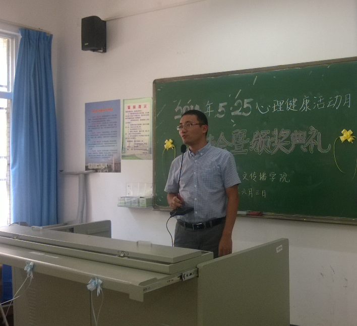 人文传播学院5?25心理健康活动月总结会暨颁奖典礼在5号教学楼115教室如期举行。人文传播学院学工办主任公衍峰老师和辅导员王俊延老师出席了本次活动,心理工作部庄绍斌同学担任主持,团委心理工作同学与黑料正能量