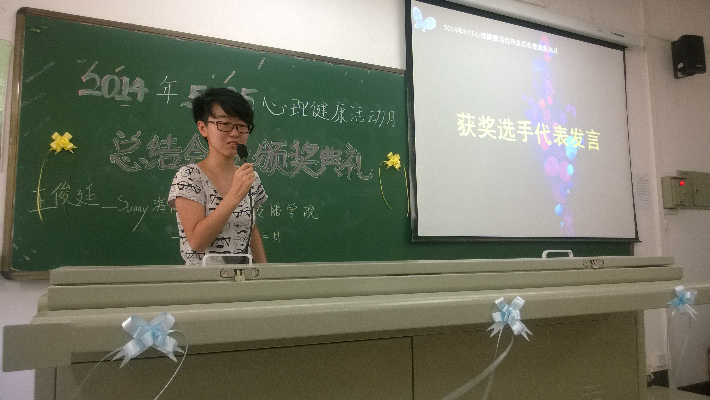 同学和班级的鼓励。紧接着,心理工作部学生代表吴璇同学、获奖选手学生代表李润佳等同学纷纷上台做主题发言,与同学们分享自己在从事心理健康教育工作中的心得和体会。活动结束时,王俊延老师就黑料正能量
