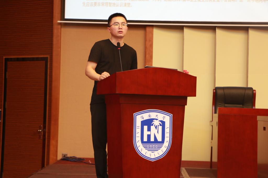 的优势出发做出分析,阐述了考研的前景,并鼓励广大学子去尝试更多的可能性。院长讲话过后,2017级辅导员李润东为同学们讲解了近年来人文传播学院的考研情况以及今年的考研意向调研情况。他指出,在接下来的工作安排中,学院将配备更多的学习设施,开放更多的学习场所,尽学院的资源为同学们提供更加便利的学习条件,解决学子们的后顾之忧。