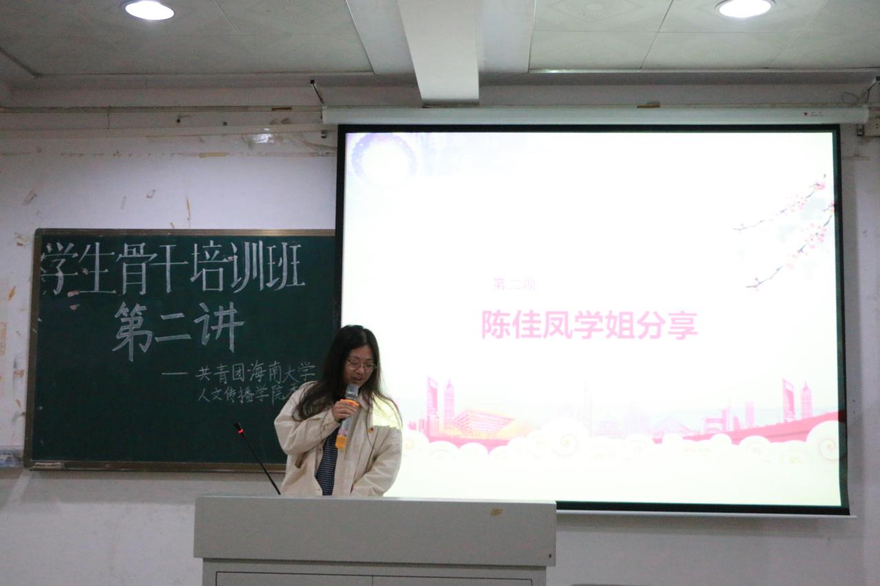 人文传播学院委员会前学生副书记施雅馨、人文传播学院青年志愿者协会前会长陈佳凤受邀出席本次活动并担任主讲嘉宾。活动由学院团委组织部实习干事徐涵琦主持,重点围绕学生组织工作进行讲解,2020级人文传播学院各学生组织干事代表参与了本次活动。