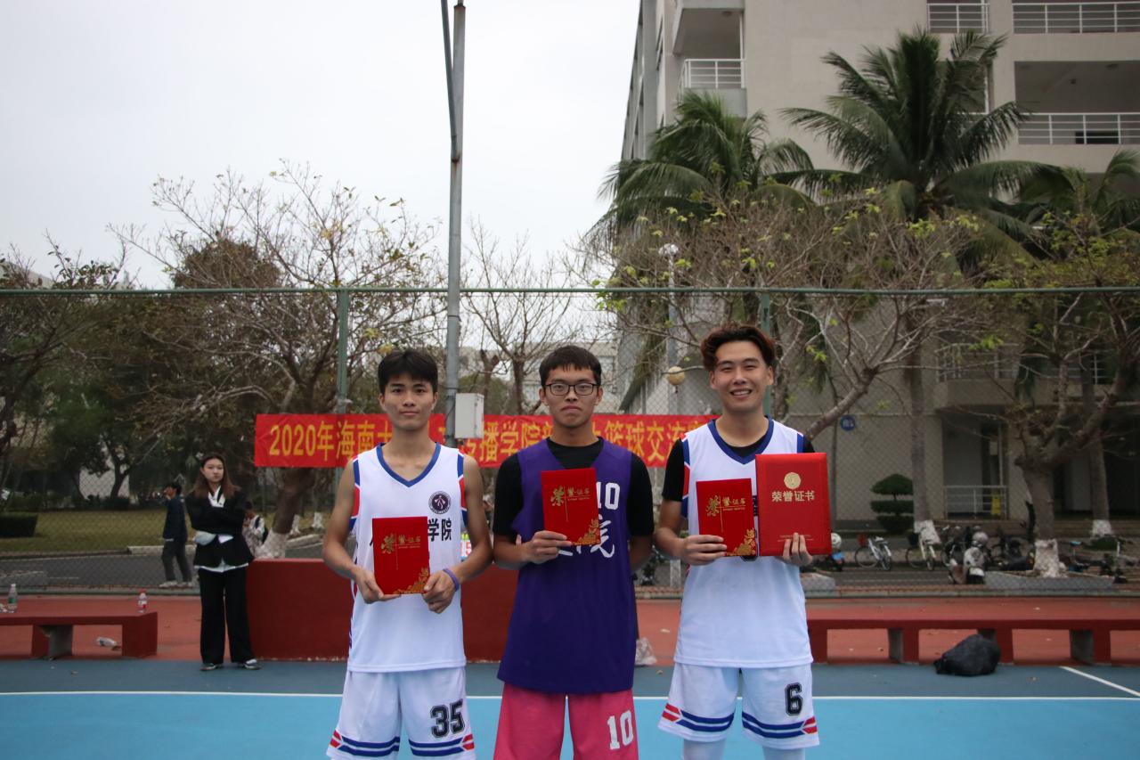 在中场休息时,球员们进行了三分球比赛。相比球赛的激烈,三分球比赛更加活跃轻松。最终,来自海甸人文队的郝云辰赢得了三分球比赛的第一名。