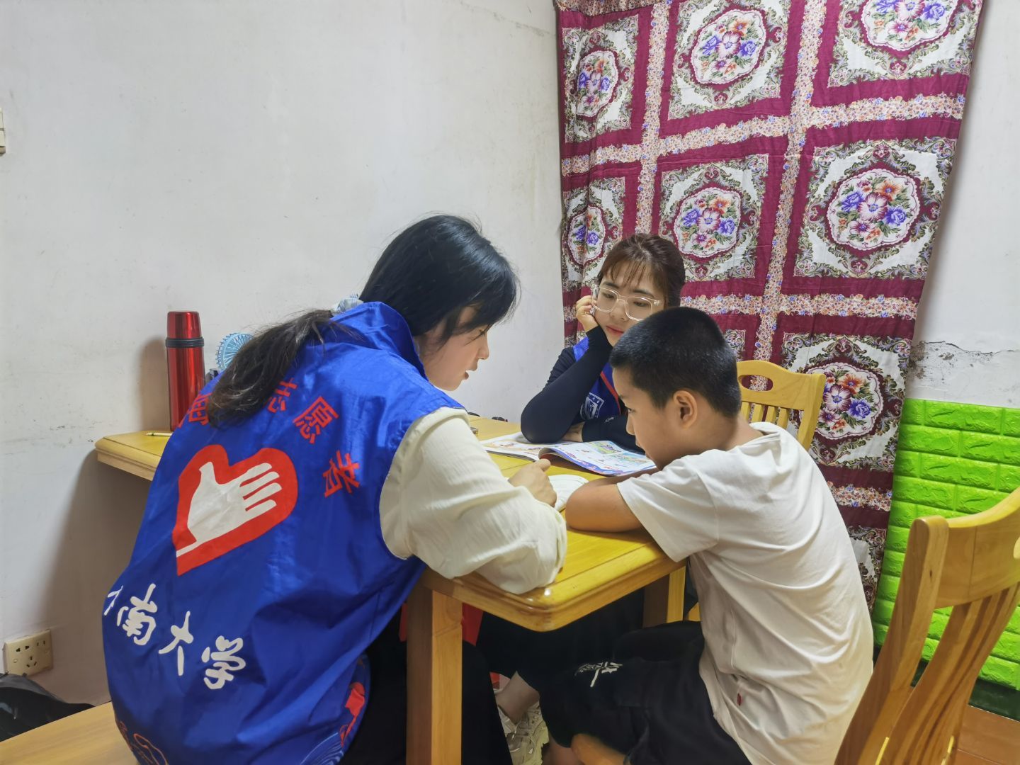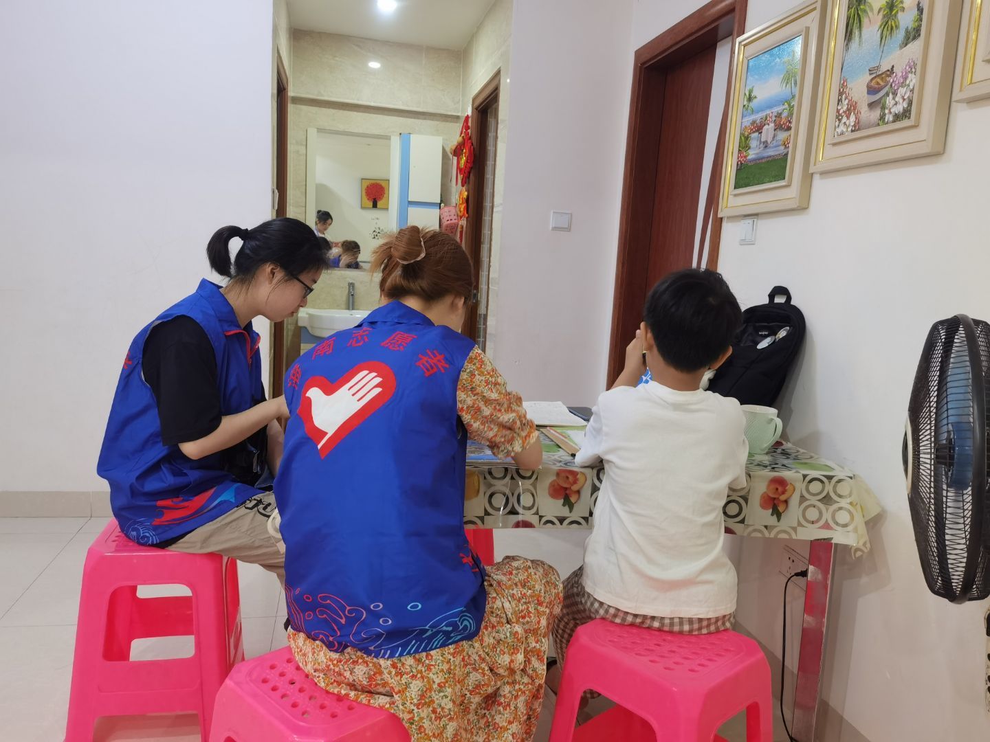 到达万福社区之后,志愿者在带队人员的安排下分成了三组,分别前往不同的家庭开展义务家教活动,把知识传递给孩子们。孩子们年龄不同、年级不同,志愿者们辅导的科目也各不相同,面对孩子们的难题,志愿者们展现出了他们的耐心和温柔,一步一步地引领着孩子们走进知识并掌握知识,让孩子们对学习更有兴趣。有的志愿者更是独辟蹊径,用自己独特的方式带着小朋友掌握知识。有的志愿者仔细认真,一丝不苟地检查着小朋友的作业,帮助小朋友们在纠错的过程中成长进步,学会更多。