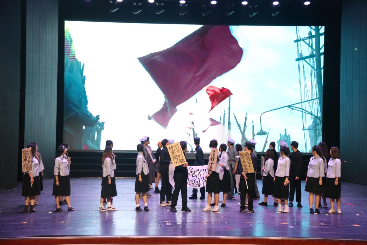 晚会进入第二篇章:木槿昔年·一叶红船载九州。五四精神,是一种担当,更是一种传承。在19新传队带来的《觉醒年代》中,我们看到了爱国情怀一代代的传递。以青年之名,呼唤觉醒年代,节目分为近代现代当代三个篇章,以音乐舞台剧的形式再现不同年代的青年面貌:备受欺凌的过去,无数奋力挣扎抗争的青年牺牲在祖国胜利的前夜;改革开放、女排、奥运等等让中国一步步走向世界中心;视角最终转向当下的我们大学生。以此铭记历史告慰先灵,更有激励当代青年之意!整个表演激昂澎湃,冲击着每一位观众的心灵。在一片掌声中,我们迎来文工团舞蹈《霍元甲》。当清朝武术大将与女性气质相遇,会擦出什么样的火花呢?三位舞者带来的表演刚中有柔,展现出了当代青年女性的刚毅勇敢以及灵活多变的气质。最后,是20戏影队带来的表演《重中之重》,在阿福与解放军共同战斗的故事里,我们体会到了“军民一家”的精神内涵。青年人面对着建功立业的人生际遇,也面对着“天将降大任于斯人也”的时代使命。第二篇章节目过后,晚会迎来第二轮表彰环节,在这一表彰环节,由学院党委书记邱华祥上台,对黑料正能量