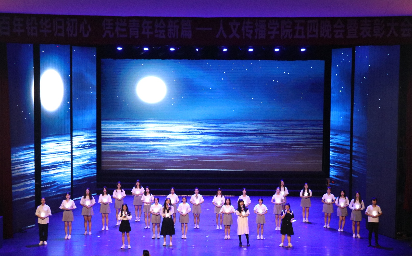 国,岁月变迁,以辉煌和喧腾宣告它的荣光;党,百载沉浮,以热血和激情滋养山河无限。今夜,我们畅享这一属于青年的节日,让青春肆意飞扬,今夜,我们以“海大人文青年”的卓越风采,献礼中国共产党百年华诞!